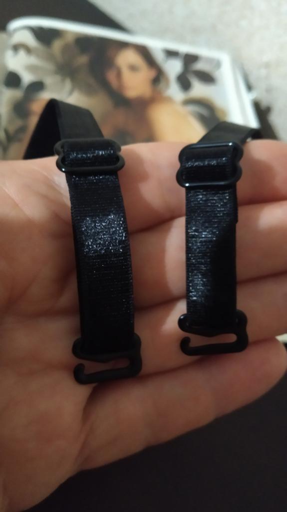 Лямки коротковаты но на мои параметры впритык,я ношу 36 А ,плюс то что узкие и тянутся хорошо и нравится что блестят . На задней части внизу прожгли так что царапает,надеюмь со временем станет мягче и не будет царапать