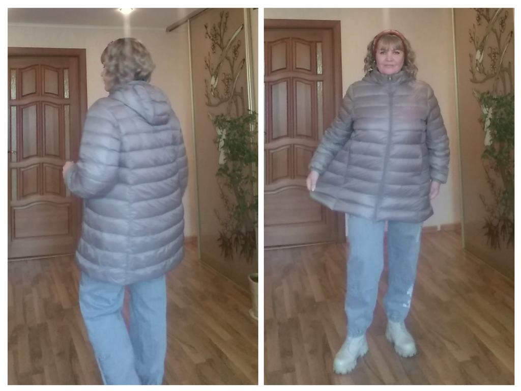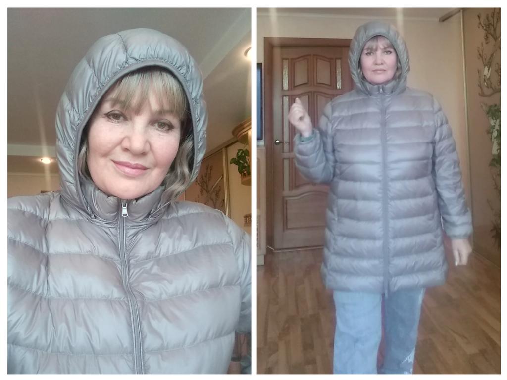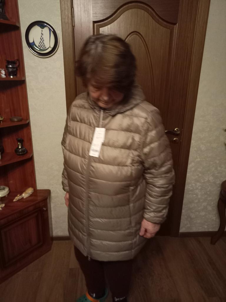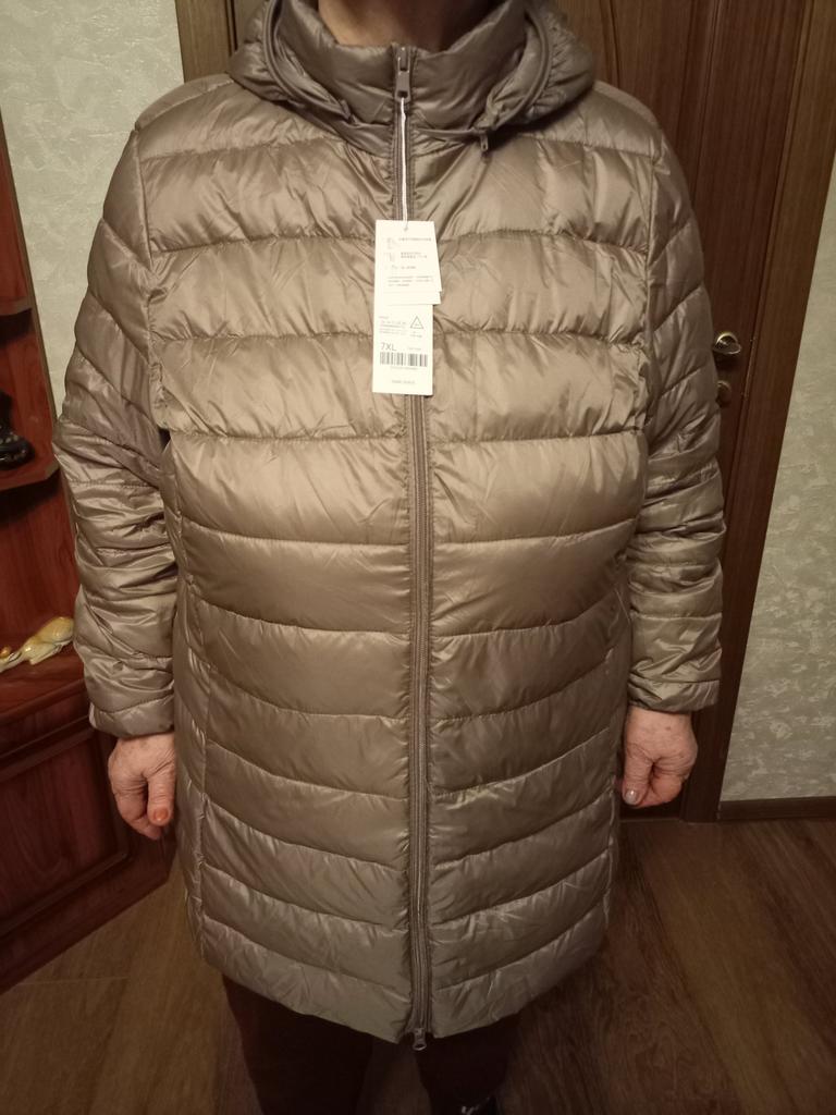 Лёгкая длинная куртка-пуховичок. Куртка не очень толстая, она на сезон конец апреля-май, или август-сентябрь, иногда возможно носить и летом, особенно когда прохладно и дожди. Заказывала для мамы. Размер 7XL хорошо подошёл - в меру свободно, при необходимости всегда можно пододеть вниз какой-нибудь свитерок и, при этом, не чувствовать, что дышать нечем. Фактические измерения куртки с размером 7XL по обхвату груди 132 см, фактическая длина 84 см - все соответствует таблице продавца. (Размеры мамы Ог - 121 см, От -112 см, Об - 126, рост 167 см). Учитывая, что у мамы не самый высокий рост, куртка села как укороченное пальто. Цвет куртки очень приятный - один из оттенков тауп, сложный, красивый, серо-коричневый с лиловым отсветом-нюансом. Другие цвета, представленные у продавца, не менее красивые - можно выбрать тот, что больше нравится. У куртки есть отстёгивающийся капюшон, и есть традиционный мешочек в который можно компактно сложить куртку на хранение. У куртки очень удобная молния на два замка, расстегивается с обеих сторон, что уместно, когда в куртке садишься. Единственное, что, пожалуй сделаю - хочется по нижнему краю стяжку - шнурок, или стяжку - резинку. Куртка рассчитана на усреднённый размер корпулентных дам, кому-то по бедрам и низу будет плотно и без шнурков, а кому-то стоит чуть скорректировать и стянуть низ. Все остальное нормально. Продавцу спасибо. В пакете лежал какой-то красный витой шнурок в подарок. Не знаю зачем он, но мои кошки сразу заинтересовались, и приспособили этот шнурок для своих игрищ, а потом вообще утащили куда-то. Все равно спасибо за подарок. Не от меня, так от моих зверей. Неплохая куртка, прилично отшита, соответствует размерному ряду, лёгкая, удобная - рекомендую. Продавцу и Джум спасибо.