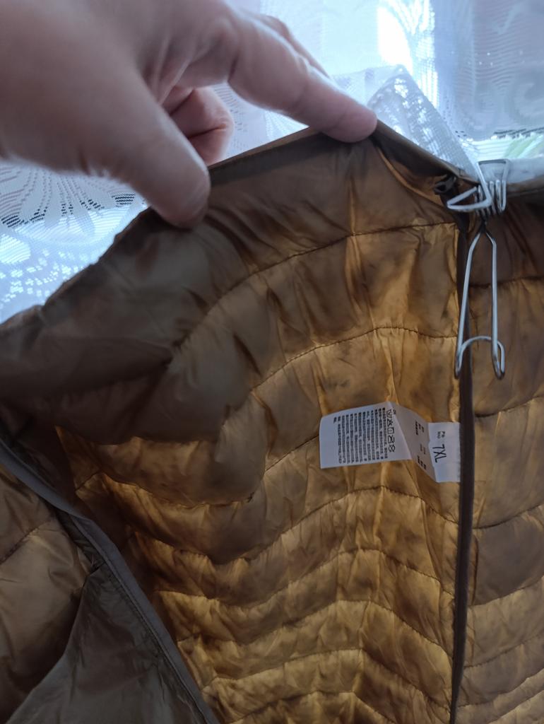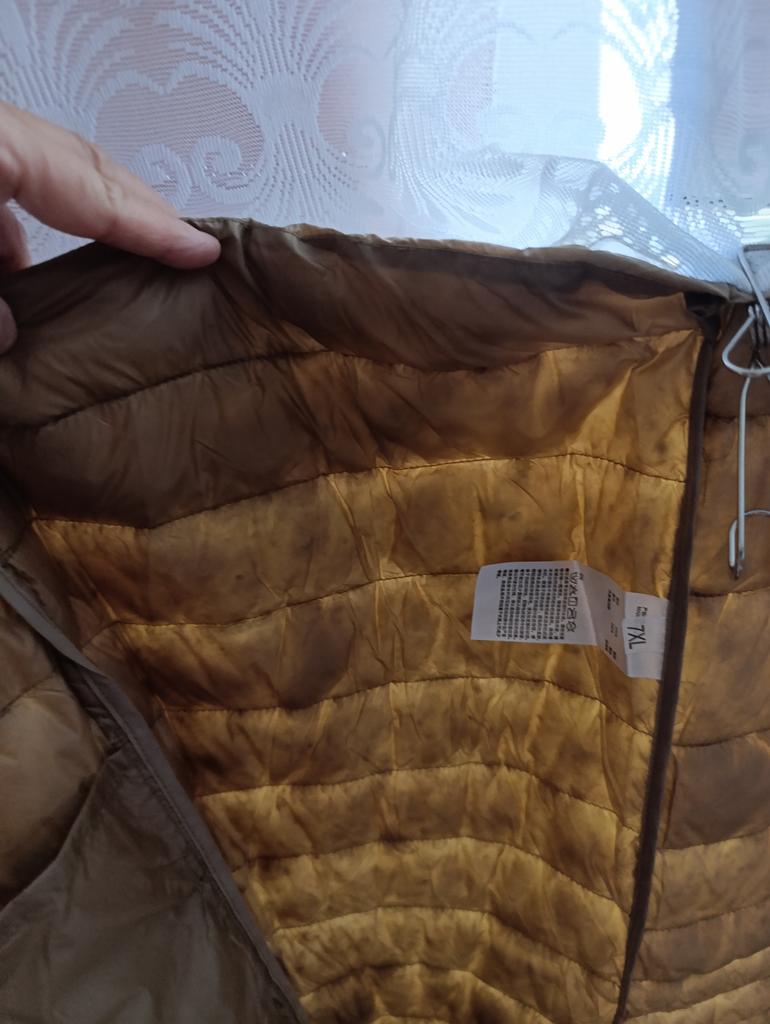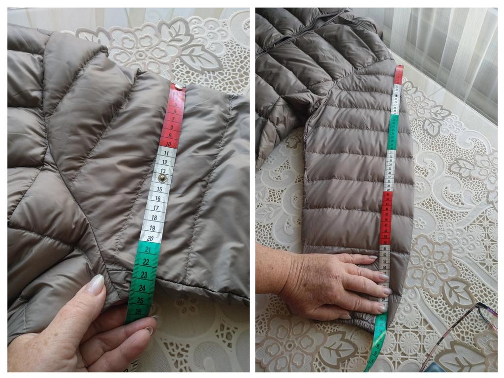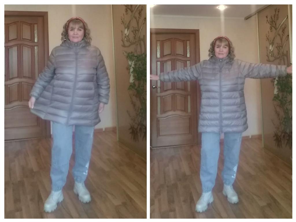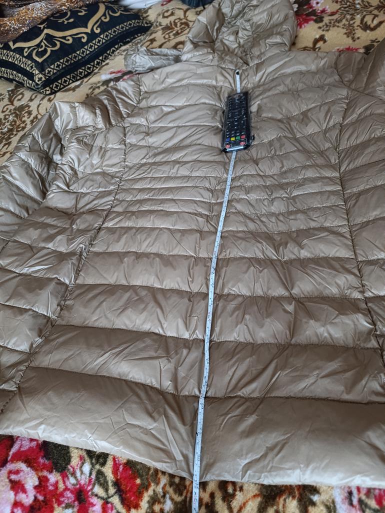Лёгкая длинная куртка-пуховичок. Куртка не очень толстая, она на сезон конец апреля-май, или август-сентябрь, иногда возможно носить и летом, особенно когда прохладно и дожди. Заказывала для мамы. Размер 7XL хорошо подошёл - в меру свободно, при необходимости всегда можно пододеть вниз какой-нибудь свитерок и, при этом, не чувствовать, что дышать нечем. Фактические измерения куртки с размером 7XL по обхвату груди 132 см, фактическая длина 84 см - все соответствует таблице продавца. (Размеры мамы Ог - 121 см, От -112 см, Об - 126, рост 167 см). Учитывая, что у мамы не самый высокий рост, куртка села как укороченное пальто. Цвет куртки очень приятный - один из оттенков тауп, сложный, красивый, серо-коричневый с лиловым отсветом-нюансом. Другие цвета, представленные у продавца, не менее красивые - можно выбрать тот, что больше нравится. У куртки есть отстёгивающийся капюшон, и есть традиционный мешочек в который можно компактно сложить куртку на хранение. У куртки очень удобная молния на два замка, расстегивается с обеих сторон, что уместно, когда в куртке садишься. Единственное, что, пожалуй сделаю - хочется по нижнему краю стяжку - шнурок, или стяжку - резинку. Куртка рассчитана на усреднённый размер корпулентных дам, кому-то по бедрам и низу будет плотно и без шнурков, а кому-то стоит чуть скорректировать и стянуть низ. Все остальное нормально. Продавцу спасибо. В пакете лежал какой-то красный витой шнурок в подарок. Не знаю зачем он, но мои кошки сразу заинтересовались, и приспособили этот шнурок для своих игрищ, а потом вообще утащили куда-то. Все равно спасибо за подарок. Не от меня, так от моих зверей. Неплохая куртка, прилично отшита, соответствует размерному ряду, лёгкая, удобная - рекомендую. Продавцу и Джум спасибо.
