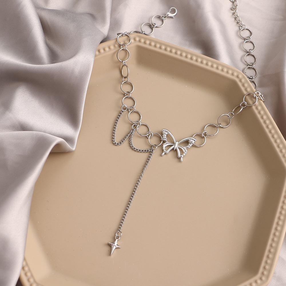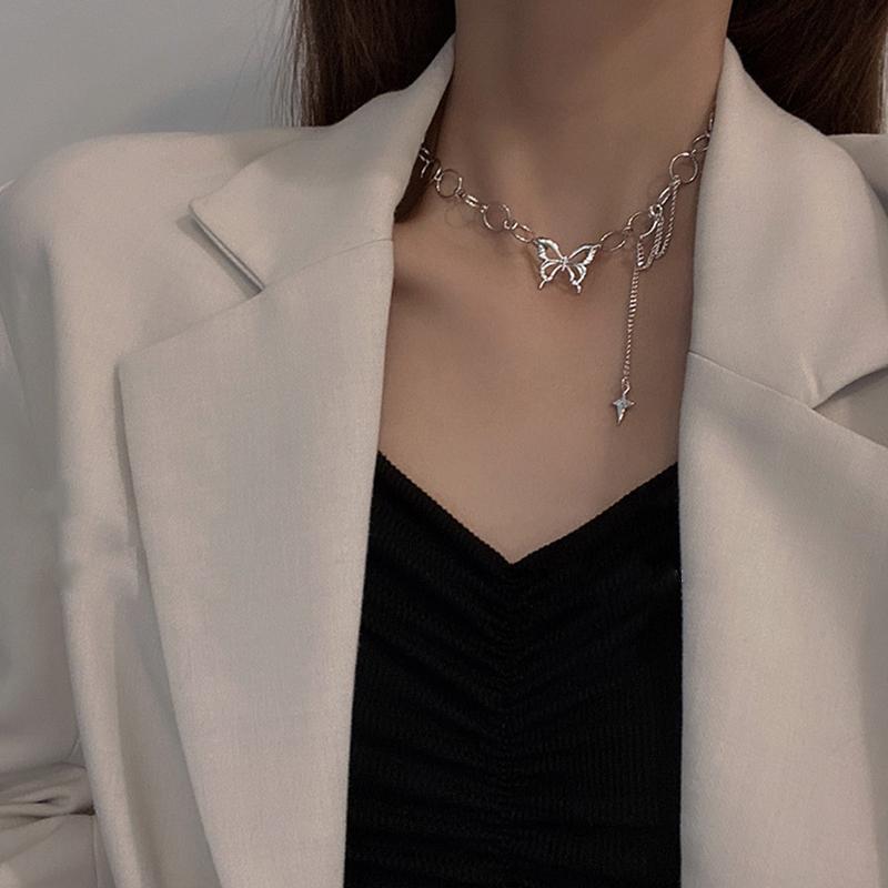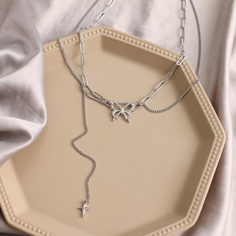 Ретро нежное ожерелье в форме сердца в форме ракушки, многослойное ожерелье с подвеской в виде бабочки, женское ожерелье в стиле панк, цепочка на ключицы, ювелирные изделия