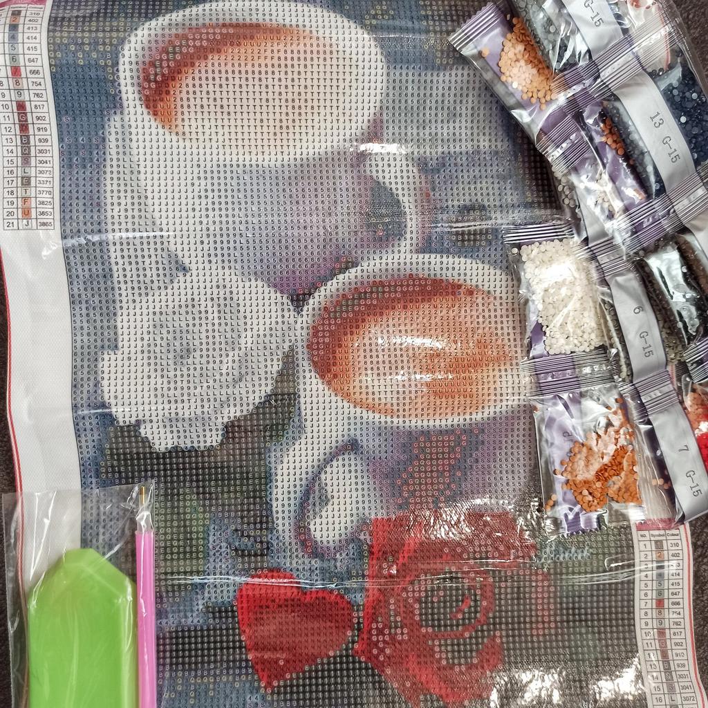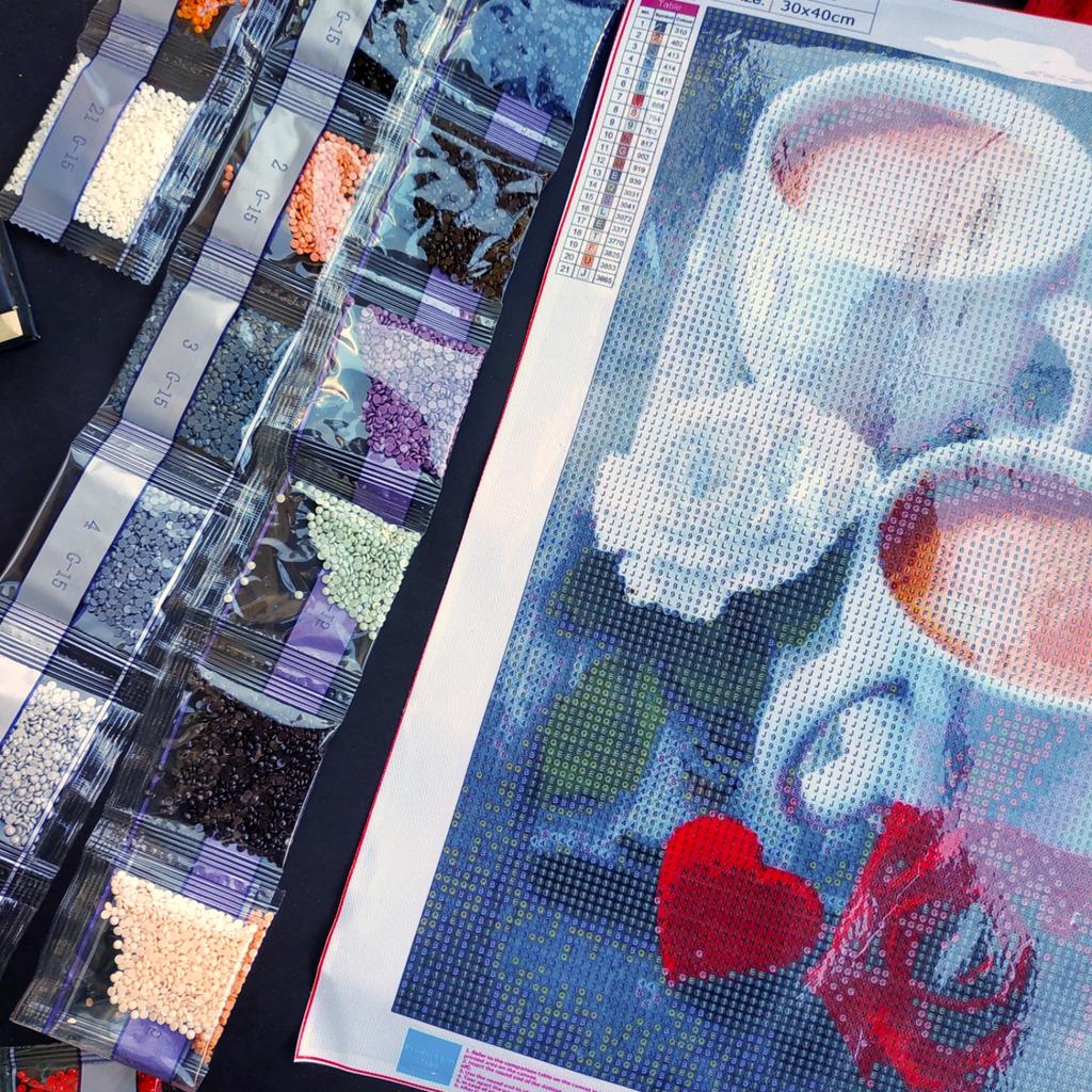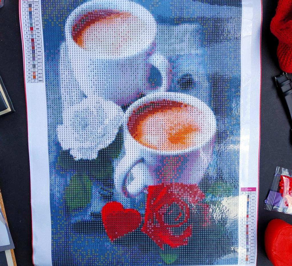 Всем привет, друзья!😻🖐 Очень красивая алмазная картина 🖼 🥀☕☕❤ Размер - 30×40 см. Покупала в подарок. Выкладка полная. В наборе идёт само полотно с клеевым слоем и условными обозначениями, разноцветные стразы, поддон для них, стилус, сухой клей к нему и инструкция. Была доставлена просто свернутая в трубку, не пострадала при транспортировке, и на подарок🎁 не стыдно! Картину рекомендую к покупке однозначно👍💯💯💯 Доставка ✈ до Минска заняла 1,5 месяца. Спасибо продавцу и джуму 😘 Благодарю вас за ваши лайки,❤ комментарии 💬 и подписку ✅