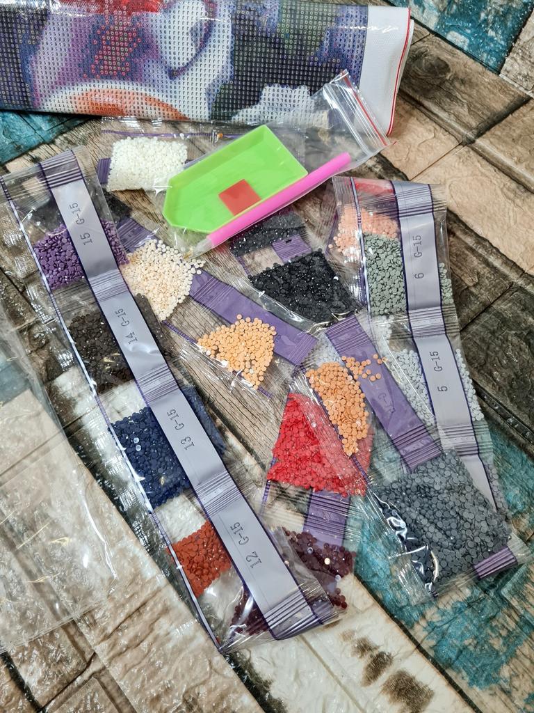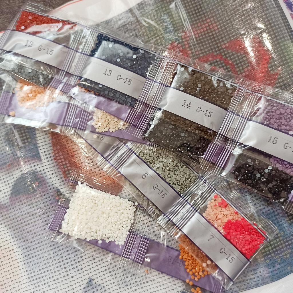 Алмазная мозаика 👍 Заказала несколько штук на подарки к новому году. Хорошо, что успели прийти до НГ)) Упаковано в пакет, при транспортировке не повредилось. Холст был накручен на пакетики с пакеты с мозаикой. В комплекте холст, ручка, мыло, контейнер и пакеты с мозаикой. Размер выбрала 30*40 см. Дочкам нравится это занятие, я летом попробовала и мне оочень понравилось, хотя я вообще не люблю кропотливую работу) Так что будет отличный подарок на НГ)) Доставка до Республики Бурятия один месяц. WeChat Tasha_Tao Удачных покупок)) С новым годом 🥳🥳🥳
