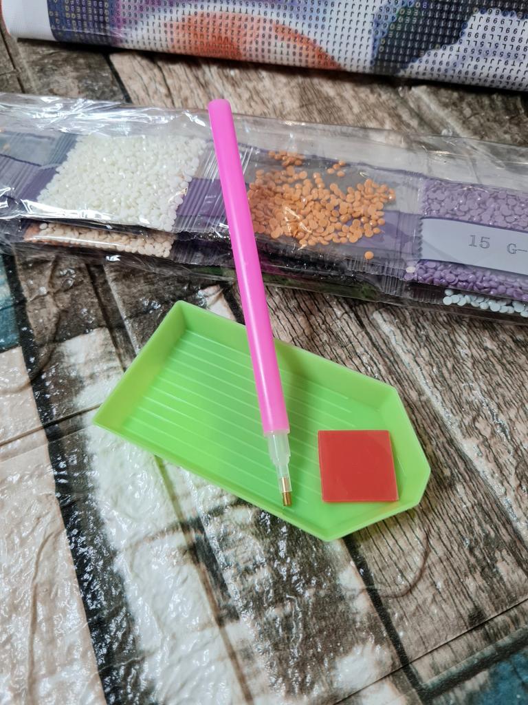Алмазная мозаика. Доставка заняла полтора месяца до почтового отделения. Холст просто свёрнут трубочкой, внутрь вложены стразы, в дороге не помялся. Набор включает в себя полотно с напечатанной на нем цветной схемой , набор разноцветных акриловых страз, специальный карандаш для нанесения страз (алмазов) и блюдце для их сортировки. На полотно со схемой нанесен клеевой слой, которых закрыт защитной подложкой. Рядом со схемой напечатан перечень цветов с номерами и соответствующими символами. Номер цвета указаны на пакетике со стразами, а символ - на самой схеме. В блюдце нужно высыпать один из цветов, пинцетом подхватывать и укладывать на клеевой слой схемы (предварительно сняв всю или частично защитную подложку). Вот и все - алмазная картина готова, и ее можно вешать на стену. Размер холста: 30 х 40 см. Без рамки. Отличное занятие и приятное времяпровождение, я заказала на подарок, интересно будет увидеть результат.