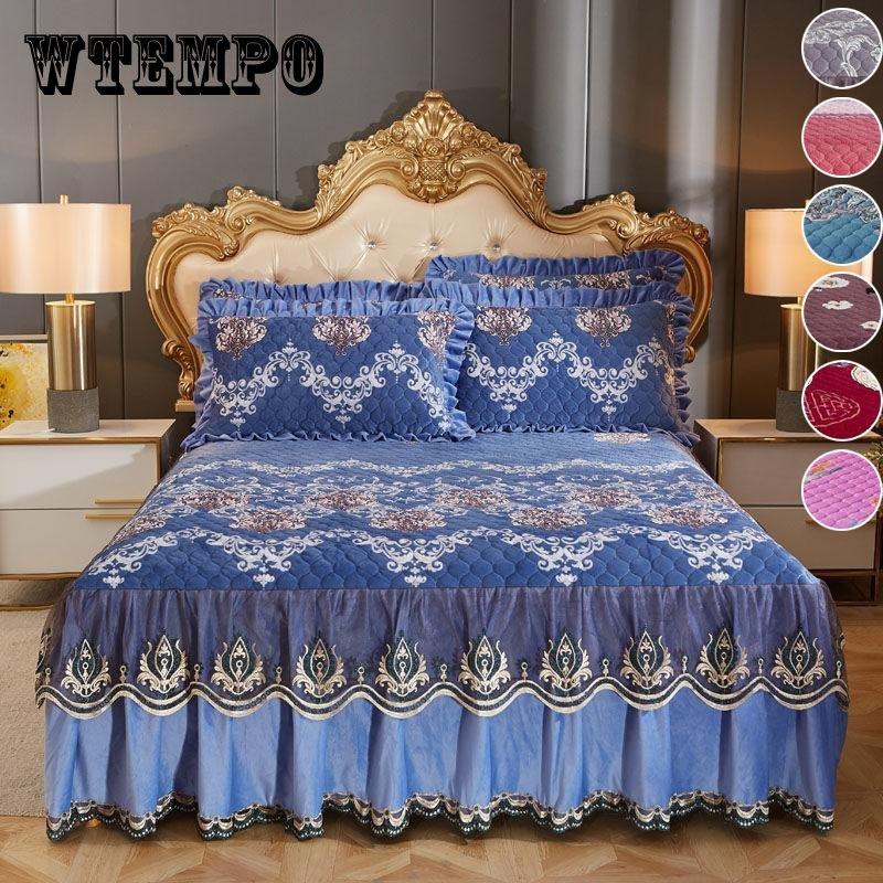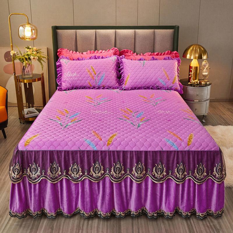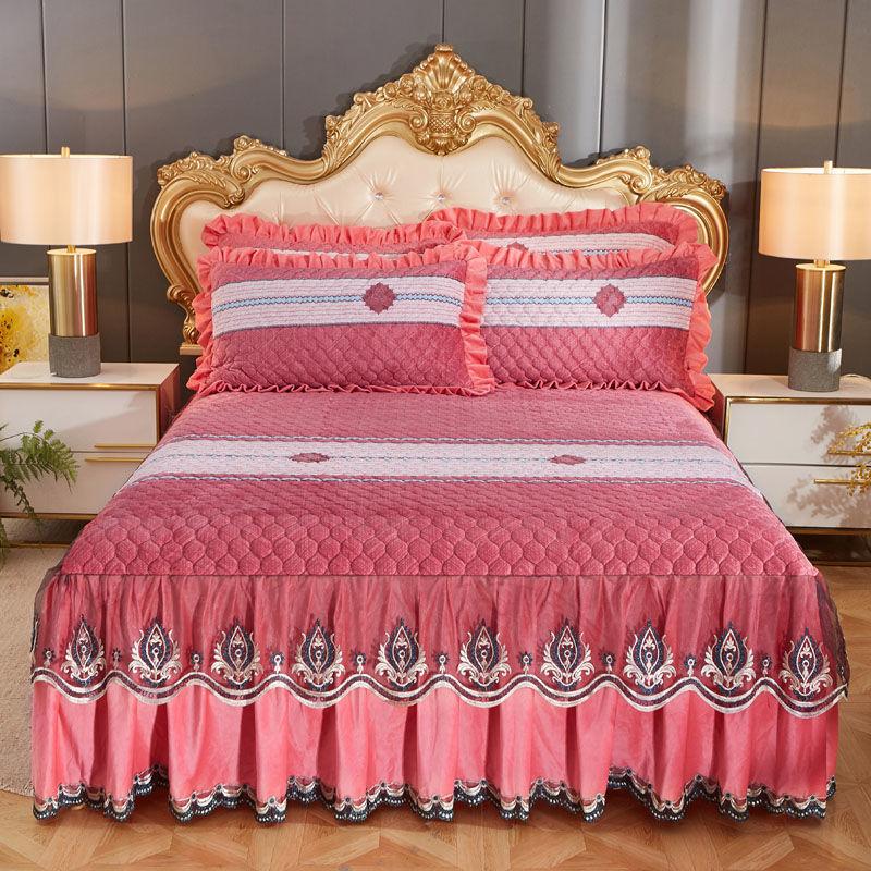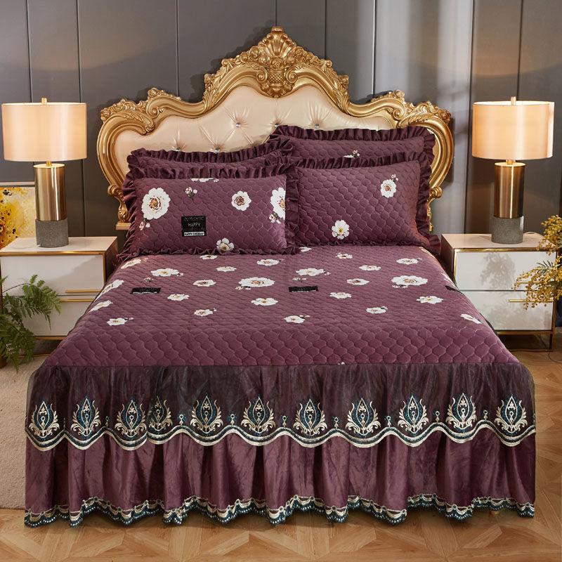 Нескользящее теплое покрывало, утолщенное зимнее постельное белье, юбка, высококачественная бархатная юбка-кровать с кристаллами, наволочки, комплект из трех предметов