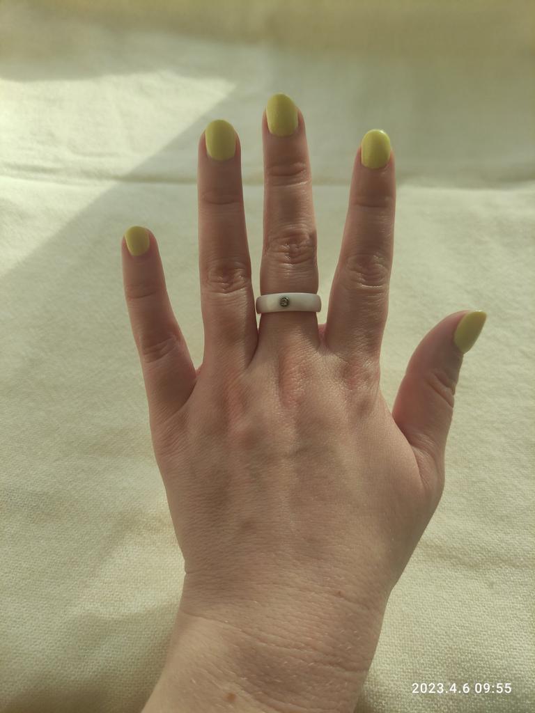 Осталась очень довольна! На вид кольцо качественно сделано. Размер 8 примерно соответствует нашему 18. Село на пальчик плотненько. На звук материал кольца точно не акрил. Действительно похоже, что керамика. Цвет белый, правда совсем слегка с перламутром. Но это почти не заметно. Удобно ощущается на пальце. Кольцо смотриться элегантно. Мне понравилось) Пришло потрясающе быстро, примерно за 2 недели.