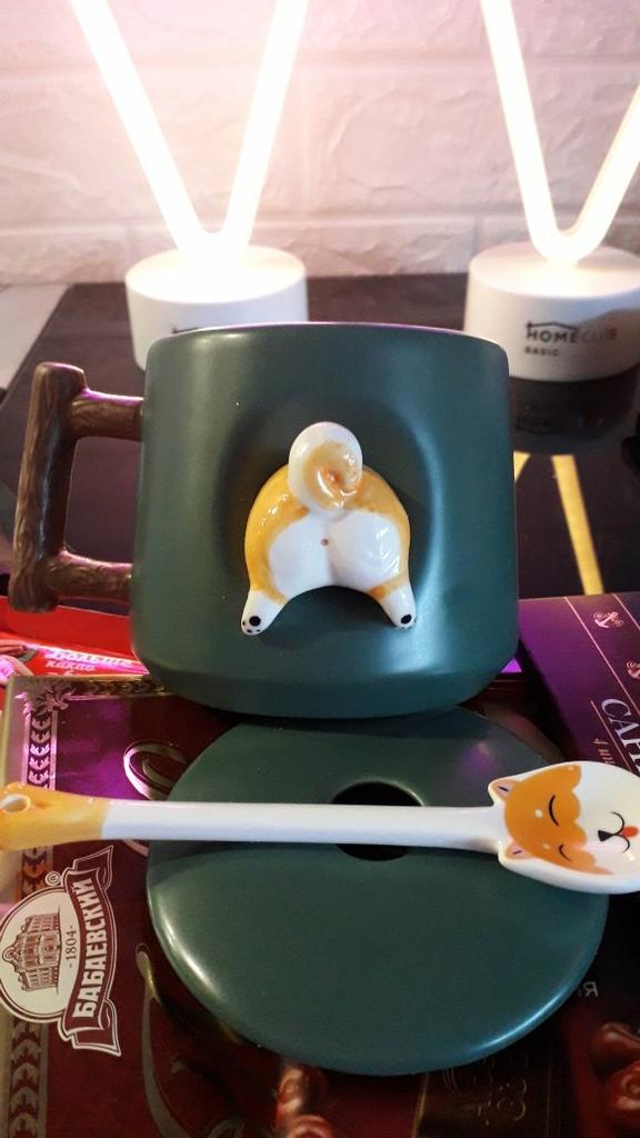 Кружка) Больше обзоров, промокоды и специальные предложения в моем телеграм канале https://t.me/natalja_velikaja Меня можно найти в поисковике по имени Наталья Великая, или через браузер. Если не можете найти, пишите ВК, ссылка в шапке профиля. Ну такая, на любителя)). Собственно, что мы имеем? Керамическая чашка с крышкой, ложкой и задницей корги )) Хотя, можно выбрать не с задней частью собаки, а с передней, то есть из кружки будет торчать не зад, а морда))) . В общем, кому что близко и нравится))). Да, и цвет есть ещё белый Купила в качестве презента, но потом закрались сомнения, что, возможно, не у всех такое здоровое, или наоборот, чувство юмора), поэтому кружка пока осталась у меня). Тяжёлая Качество отличное Объем, как мне кажется, 200, или больше Упакована была очень надёжно По поводу коробки- не помню. Если и была, то обычная, не подарочная. Мне кружка нравится. Не знаю, стала ли бы я из нее пить, или только любовалась бы ею, но если бы мне такую подарили бы, я бы точно оценила).