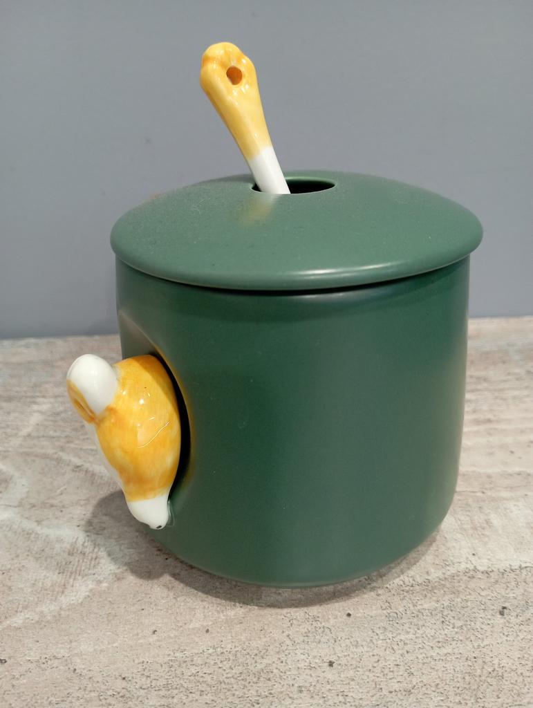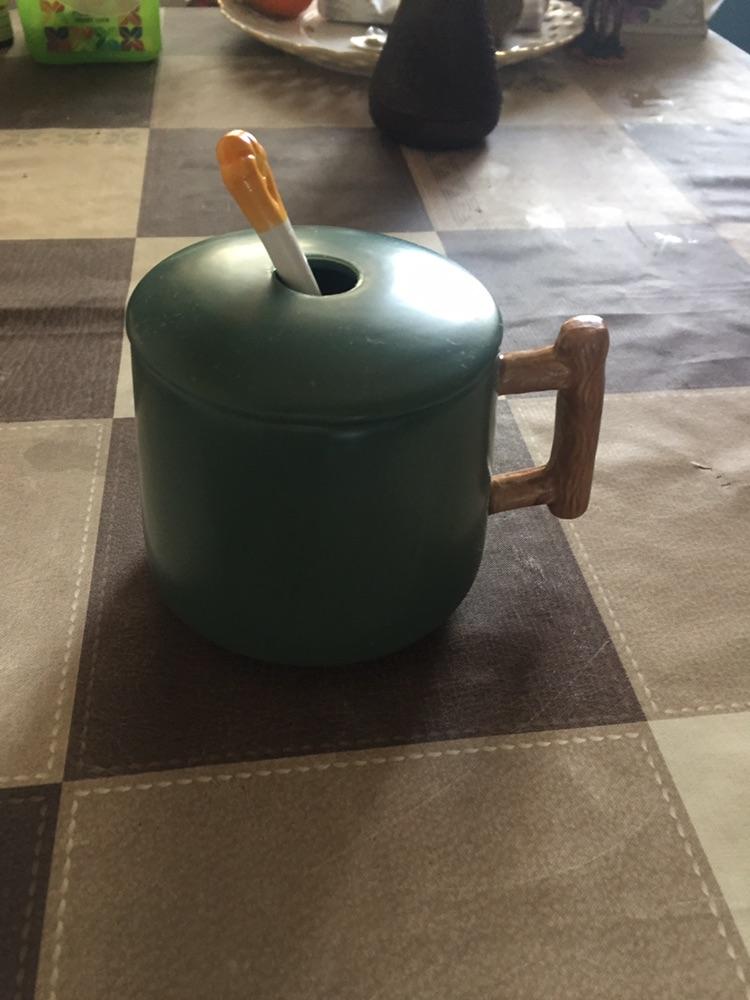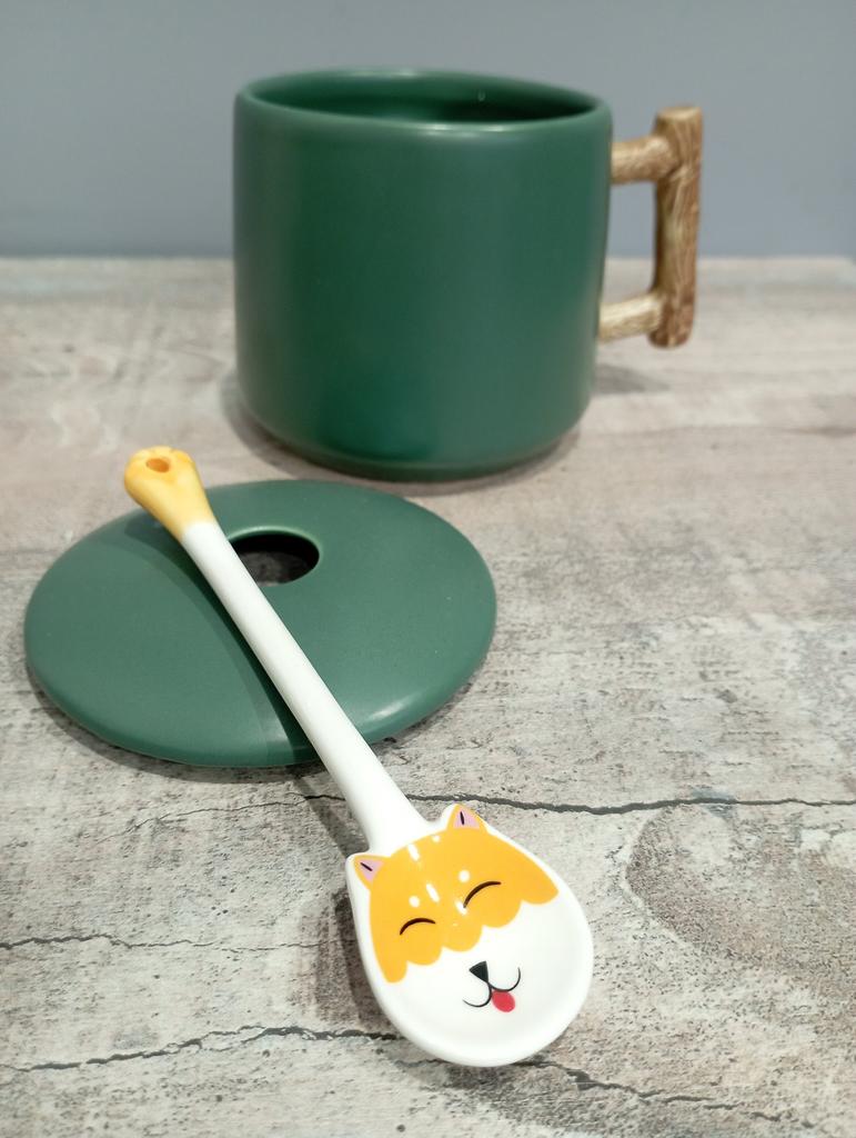 Чашка N5.Купленная мной на Джуме! Пришла не разбитая ,хорошо упакована. Ложечка в бархатном белом мешочке! Да - это действительно керамика! Состояние идеальное,все края ровные,без зазубрин. Такой вкусный зеленый цвет матовый и рыжый кот глянцевого цвета,все сочетаеться очень. Правда пришла без подарочной коробки,но продавец положил пакетик чая и купон на скидку 10%. Рекомендую!