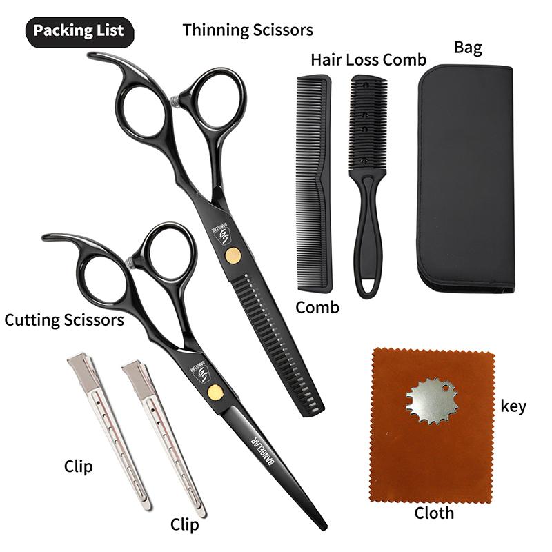 SANGELAR 6-дюймовый парикмахерский набор, ножницы для волос, черные семейные парикмахерские ножницы, набор парикмахерских инструментов, парикмахерская для всей семьи, парикмахерская