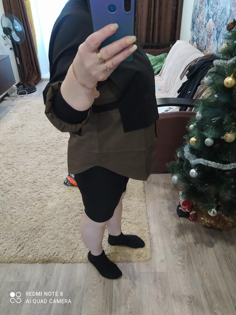 Свитшот- рубашка. Любительницам небанальных, дизайнерских вещей свободного кроя- рекомендую! Дамы, вы только посмотрите: какая же ляпота!) В этом свитшоте отлично все: фасон, пошив, материал, цветовое сочетание. Рубашка из хлопка. Кстати, с изнанки тоже хлопок. На случай, если вы не переносите синтетику. Черная часть, полагаю, синтетику содержит. Она тянется, и выглядит как синтетика. Хорошая, к слову. Мягкая, приятная, током не бьёт). Размеры L-XL. Не мне L. Рост 167, параметры 98-85-100. Мне свободно, как я люблю. Обратите внимание: внизу рубашка многослойная. На рукавах манжеты из такой же ткани, как и верхняя часть свитшота. Замеры. ОГ 60, длина 73, рукав 62( измеряла от горловины). Претензий к качеству нет. Все идеально. Есть бирки и этикетки. Конечно, я рекомендую.
