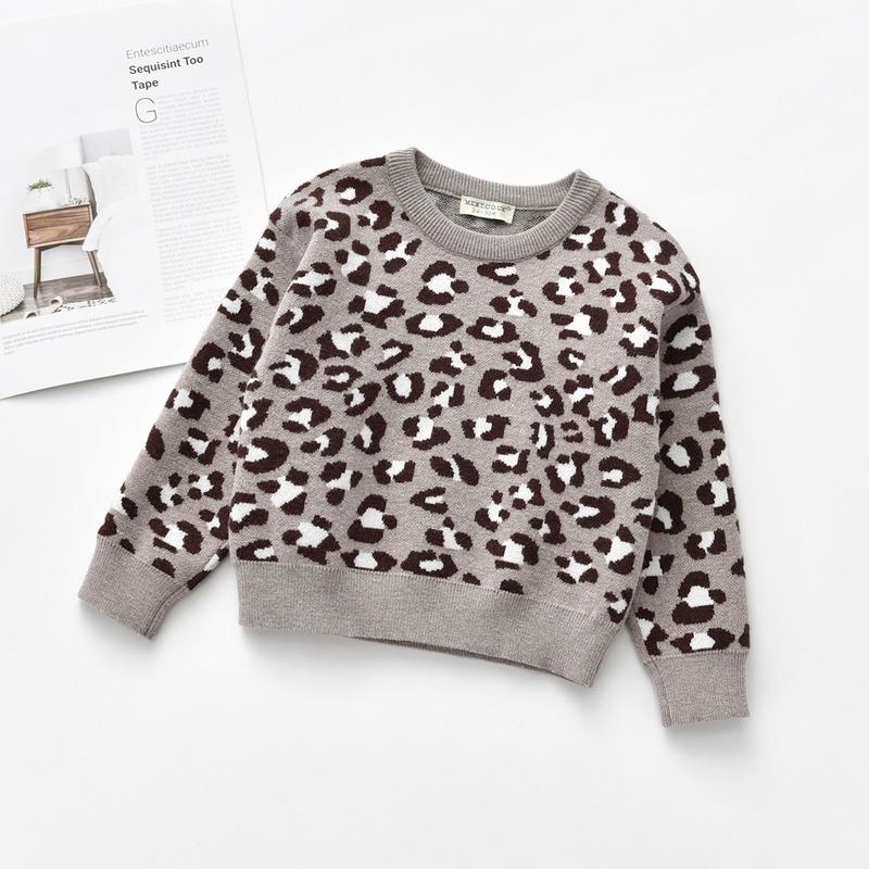 Детская одежда Детский пуловер-свитер Топ с длинными рукавами и круглым вырезом с леопардовым принтом Детский свитер