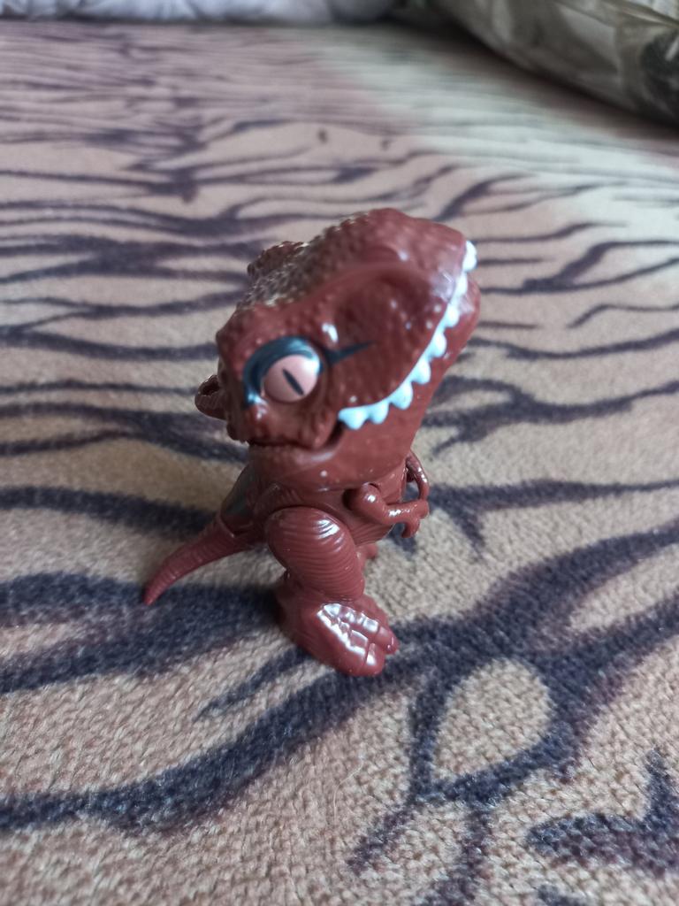 Ну вот приехал новый динозавр, на этот раз - коричневый. Игруха замечательная! На 10 баллов. В нее мгновенно влюбляются и дети, и взрослые :). И я в том числе. У меня в цветах уже водится парочка зеленых. Заказала повторно. Хорошо сделано, все тонкие детальки: хвост, передние лапы на месте, без сколов и заусенцев от штамповки. Зверюха кусается! Подарю внуку подруги. Несомненно, буду еще заказывать. Рекомендую!