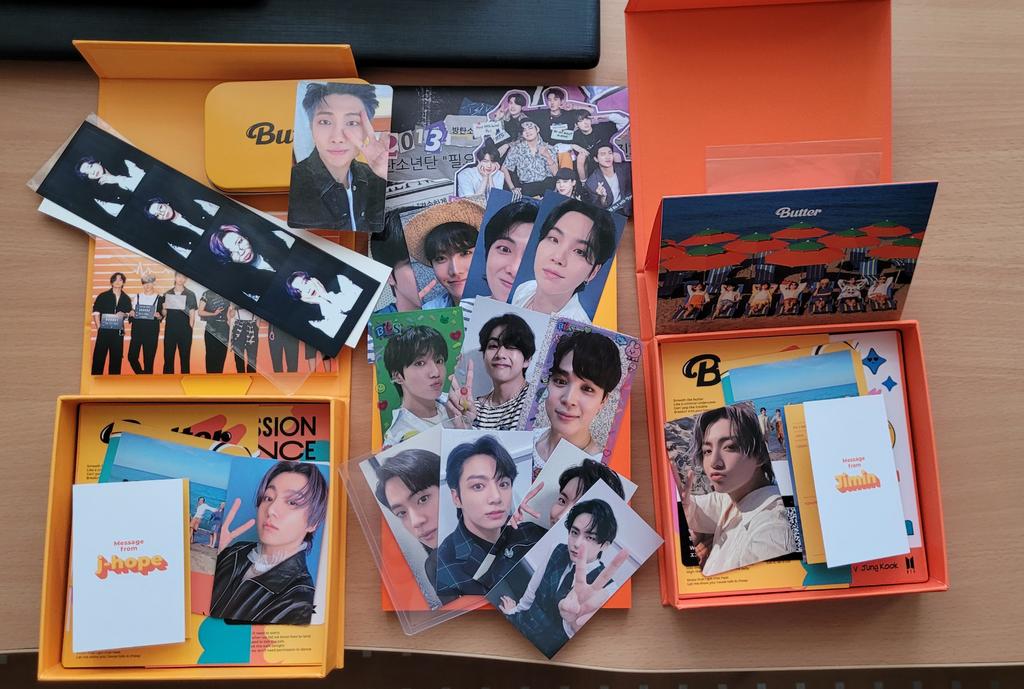Мне пришли альбомчики! Заказывала сет с предзаказками и я просто в восторге! Во-первых, хотя коробка была довольно потрепана, ничего из содержимого не пострадало, потому что было ну ооочень много пупырки, за что могу сказать огромное спасибо продавцу Во-вторых, мне пришло целых 11 карт, конвертик с бантанами и твёрдый протектор в подарок от продавца, спасибо большое за такие классные плюшки😄 Ну и напоследок, я не знаю кому я продала душу, но мне попалось 3 КАРТЫ с моим биасом - Чонгуком😱 Я просто в шоке! Также предзаказка была с Намджуном, а сообщения от Чимина и Хоби Доставка была один месяц, долго не было вестей после отправки из Узбекистана (из него была отправка 30 августа и только 14 сентября он прибыл на российскую таможню), но альбомы пришли поэтому всё прекрасно😊