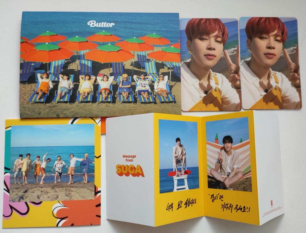 Покупался, но желтая версия ушла в подарок. Альбом очень яркий, обложка приятная на ощупь, но он меньше, чем ожидалось. Если кто-то покупал альбом ATEEZ THE WORLD EP.1, то он немного больше, чем butter. Сам альбом на магнитах, поэтому его удобно открывать и закрывать. Пусть сто раз и смотрела наполнение альбома, но было приятно самой открывать и изучать всё. Порадовало получить карту Чимина, т.к. это мой биас. Правда ожидалось, что вторая карта будет с кем-то другим, но повторку уже нашлось кому подарить. Вкладыш с подписью Юнги тоже неплохой, пусть и надеялась на кого другого. Всё целое и годное. Плюс в подарок от продавца было 4 карты и твердый проектор за что отдельное спасибо.