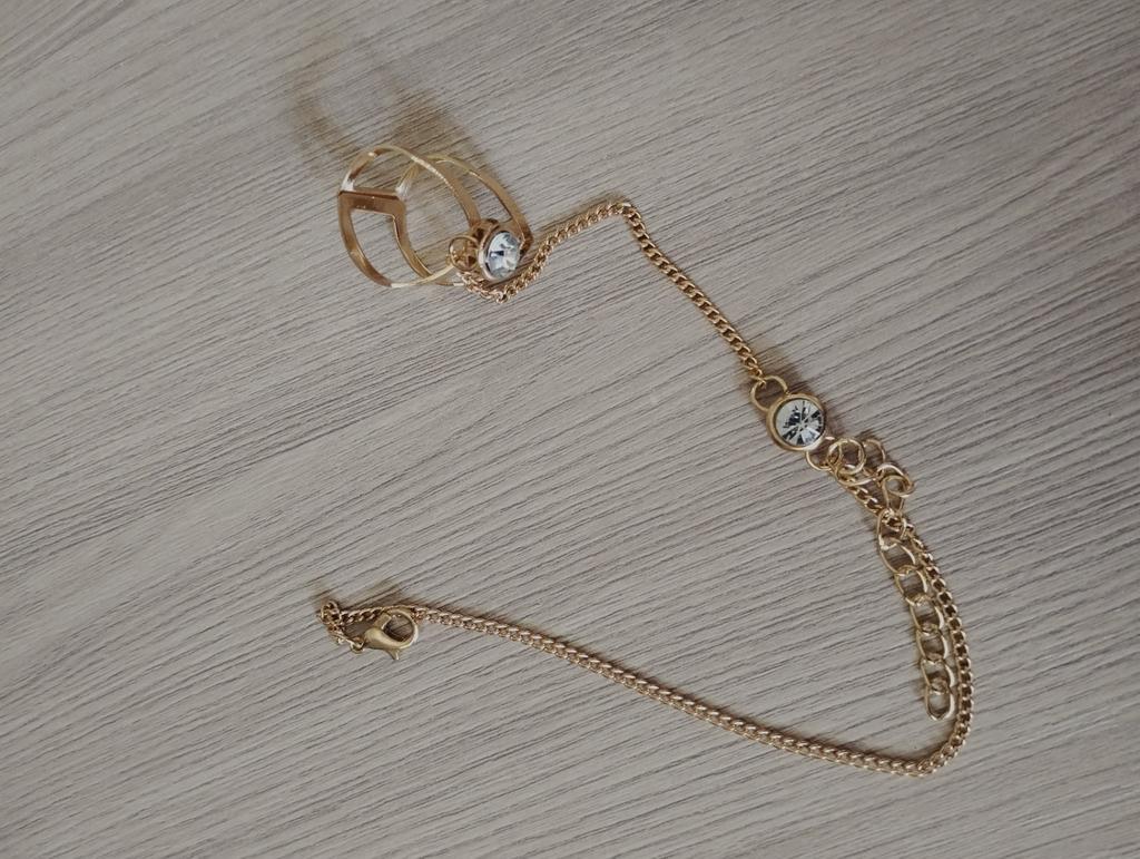 Интересная штучка. Именно такая, как заявлено. Шла месяц, получена в сохранности. Все удобно, размер кольца и браслета регулируется. У камешка свежий вид. Это украшение отлично смотрится на миниатюрных, хрупких руках. Мои руки чуть массивные, поэтому на данный случай будет лучше, если сделать еще 2 кольца на соседние пальцы, - так получим баланс объема.