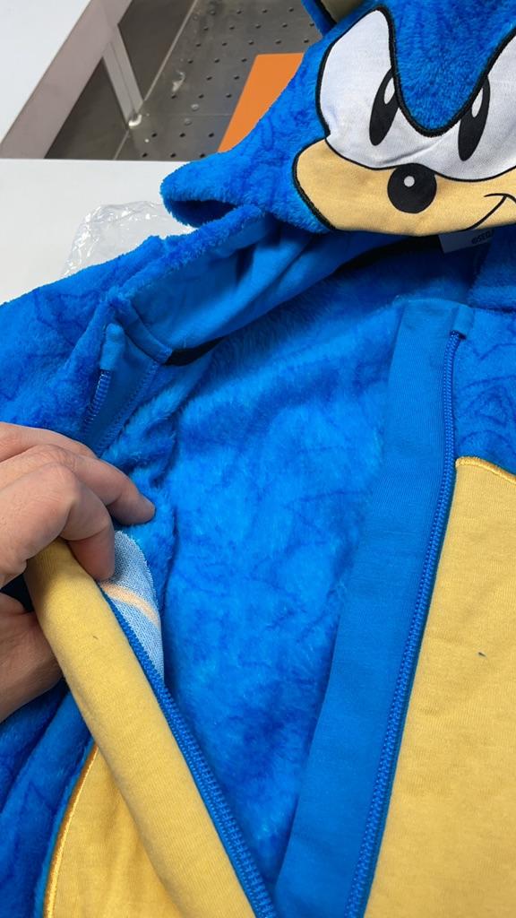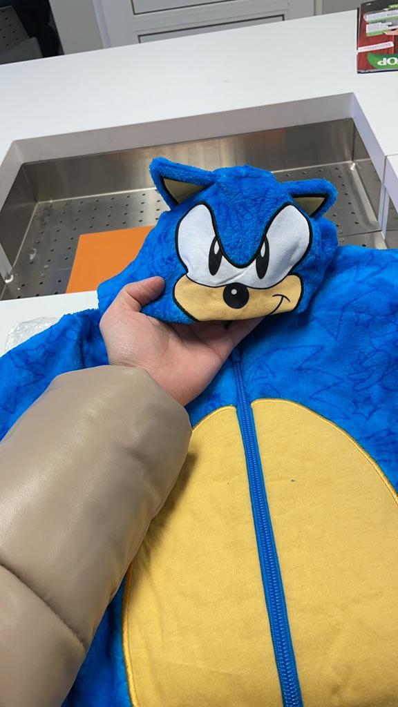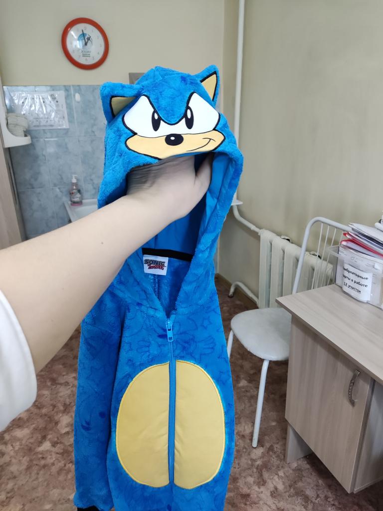 Посылка шла месяц, отслеживалась отлично! Ожидала чуть лучшего качества от данного комбинезона, синяя ткань оказалась синтетикой. Мордочка Соника выполнена хорошо. Иголки сзади топорщатся так же как на фото в описании товара. Размер подошёл отлично. Впечатление было бы на 5 *, если бы не синтетическая на 100% ткань, которая не соответствует заявленной цене. Ребёнок станет потеть и ткань это не впитает. Но! Носить в холода на футболку и колготы пойдёт. Хотелось бы передать спасибо швее, швы отличные!