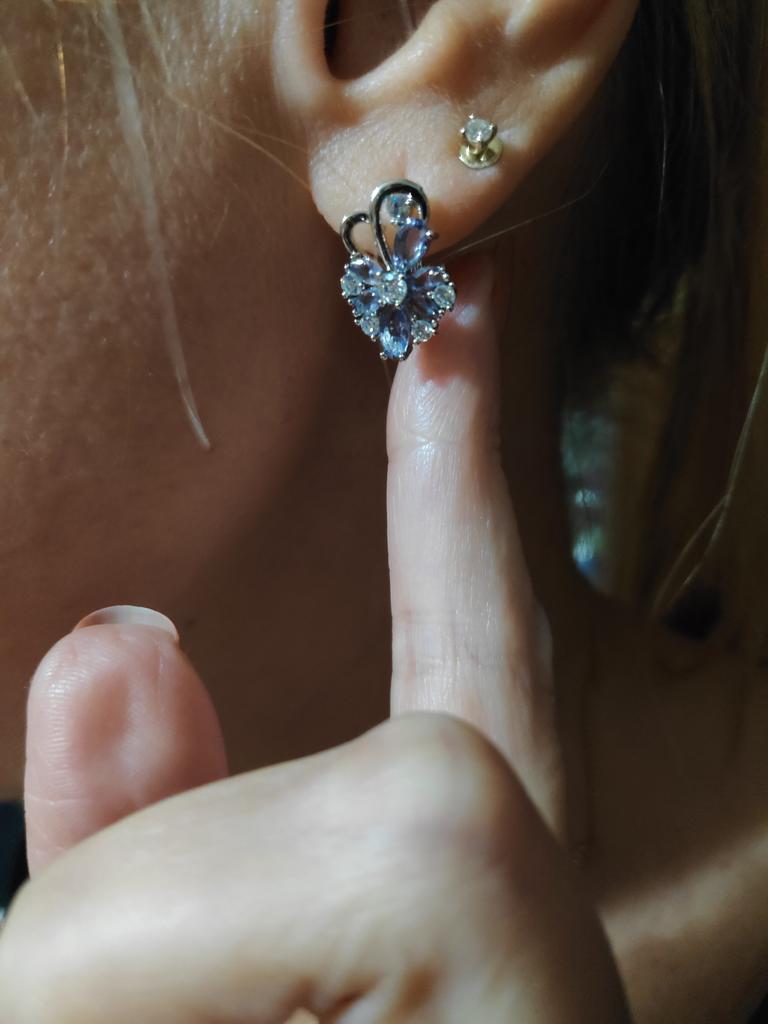Маленькие милашки! Серьги очень красивые, нежные, а как аккуратно сделаны. Полнейший восторг. Замочки хорошо работают, все камешки на месте, на ушке не чувствуются, прям невесомые. Запакованы были просто в пупырку и пакет. Доставка месяц до Кишинёва, трек полностью отслеживался, пришли в сборной посылке. Всё отлично, пять звёзд! Спасибо большое продавцу и Джуму! Дополняю отзыв: прошло больше года, серьги как новые! Ничего не облезло, не потемнело, много раз мокли при мытье волос. Даже не ожидала, что будут такие качественные. От души рекомендую! 😘👍🏻👍🏻👍🏻