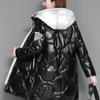 Женское зимнее корейское свободное стеганое пальто, теплая куртка-парка с воротником-стойкой, женская глянцевая куртка средней длины