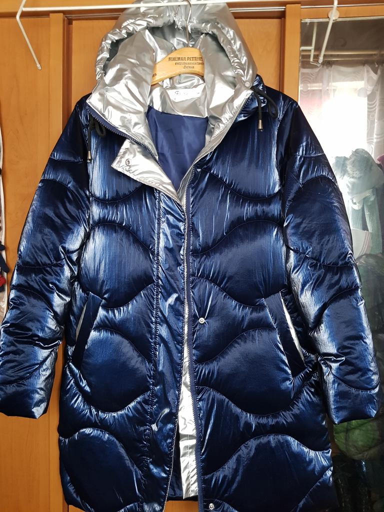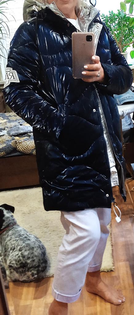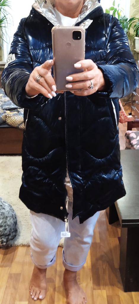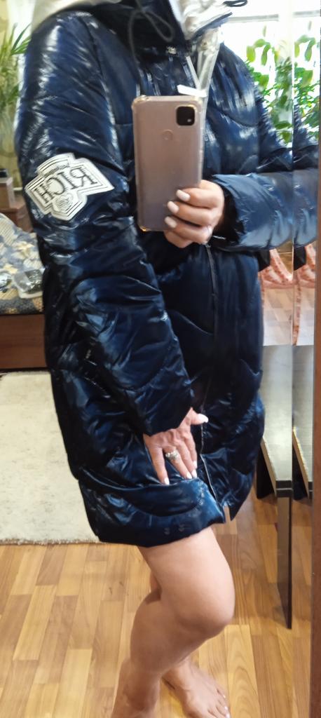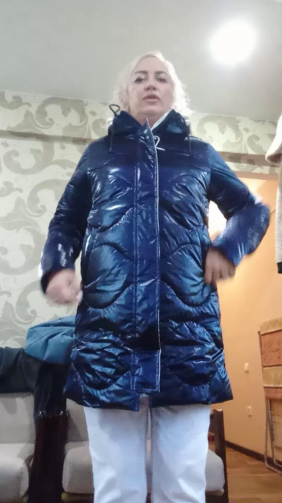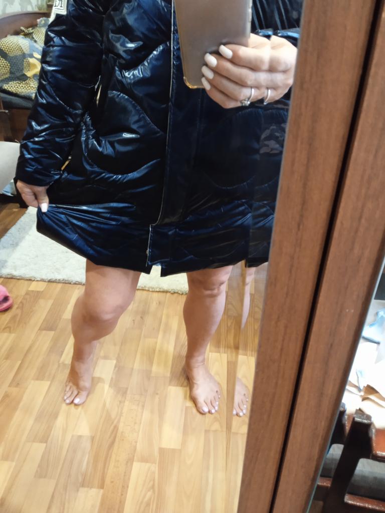Девочки, куртка (если сказать одним словом) замечательная. Ношу 48размер. Мои параметры 98-85-98. Напоминаю, заказала XL. Куртка свободна, но я мерила просто на футболку. С толстым свитером будет самое то. Мой рост 159 см и она мне почти по колено. Очень лёгкая, удобная (лекало хорошее). И ещё немаловажная деталь - очень красивая! Темно-темно-синий цвет с небольшим отливом. И серебристый капюшон. Шла, конечно долго (но с этим уже смирилась), но результат-💣. Сказать откровенно, даже не ожидала такого результата! Девочки, о тепловых её качествах судить буду зимой, а сейчас, просто рекомендую к покупке (настоятельно!)