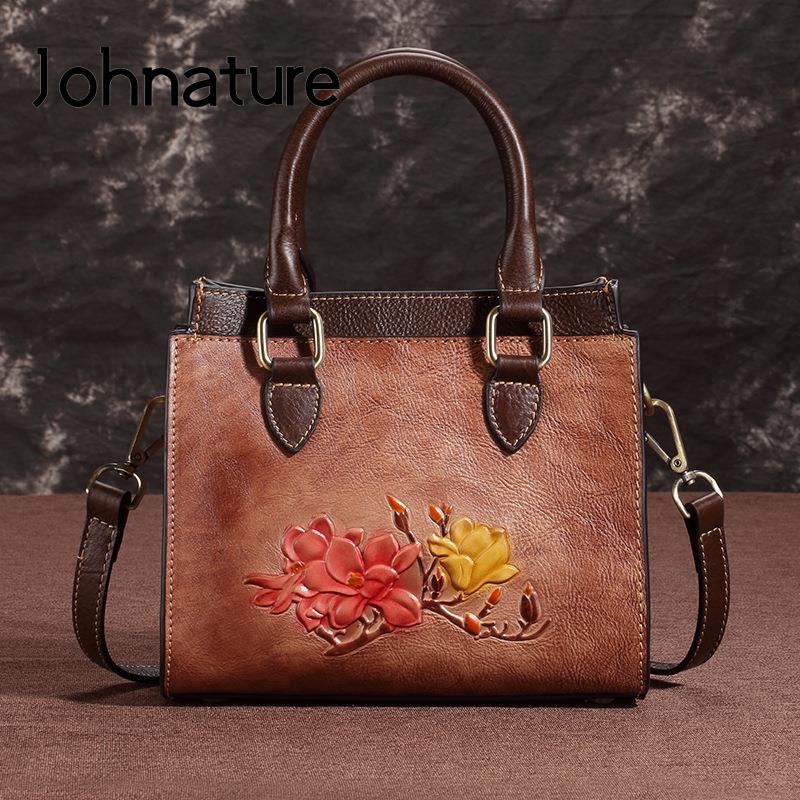 Johnature Винтажная женская сумка из натуральной кожи с тиснением, роскошная сумка из натуральной яловой кожи, сумки на плечо и через плечо
