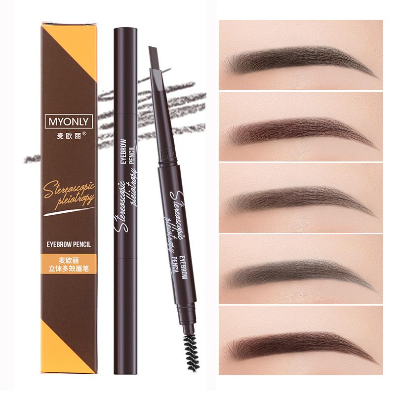 Трехмерный мультиэффектный карандаш для бровей Myonly, двуглавый треугольный карандаш для бровей с треугольными словами, карандаш для макияжа для начинающих нелегко размазать