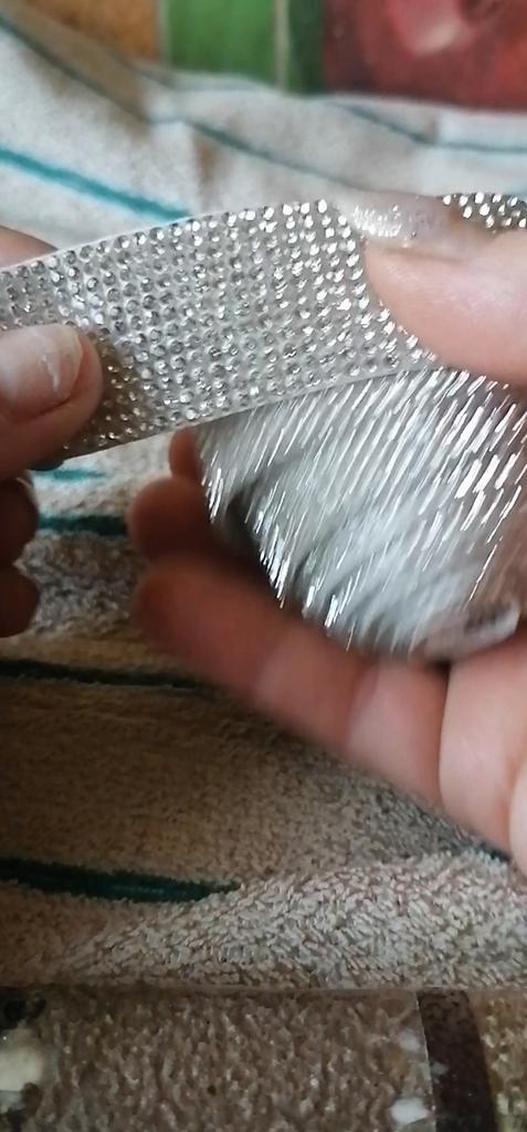 Лента здоровская, качественная. Блестит. Спасибо продавцу за упаковку и быструю доставку. Длина 90см, ширина 1,5см.Можно разрезать между стразиками и будет тоненькая лента. Рекомендую.
