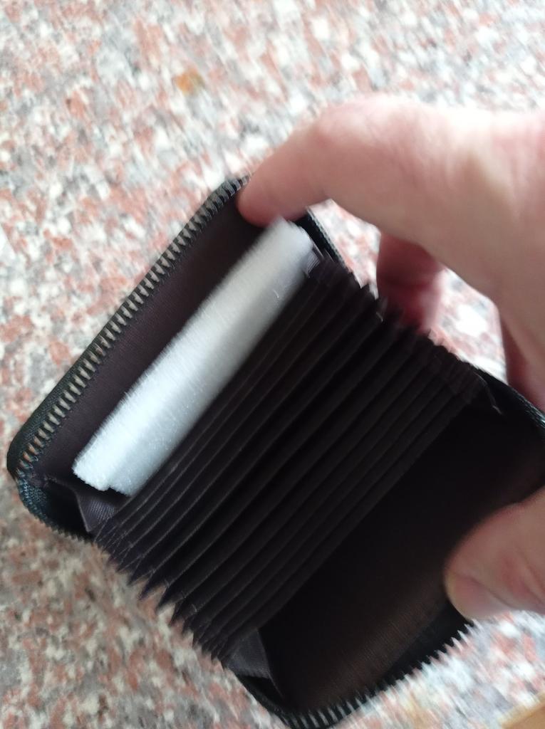 Сейчас хожу с другой, в которой карты вставляются в пластиковые прозрачные карманы. Но это жутко неудобно. Пока картой долго не пользуешься, она к пластику прилипает. Когда достаёшь - края кармана отрываются, пока она от пластика отлипнет. Надеюсь эта будет удобнее. Сюда, к тому же, можно и купюры ложить, и монеты. Спасибо продавцу и Джуму.