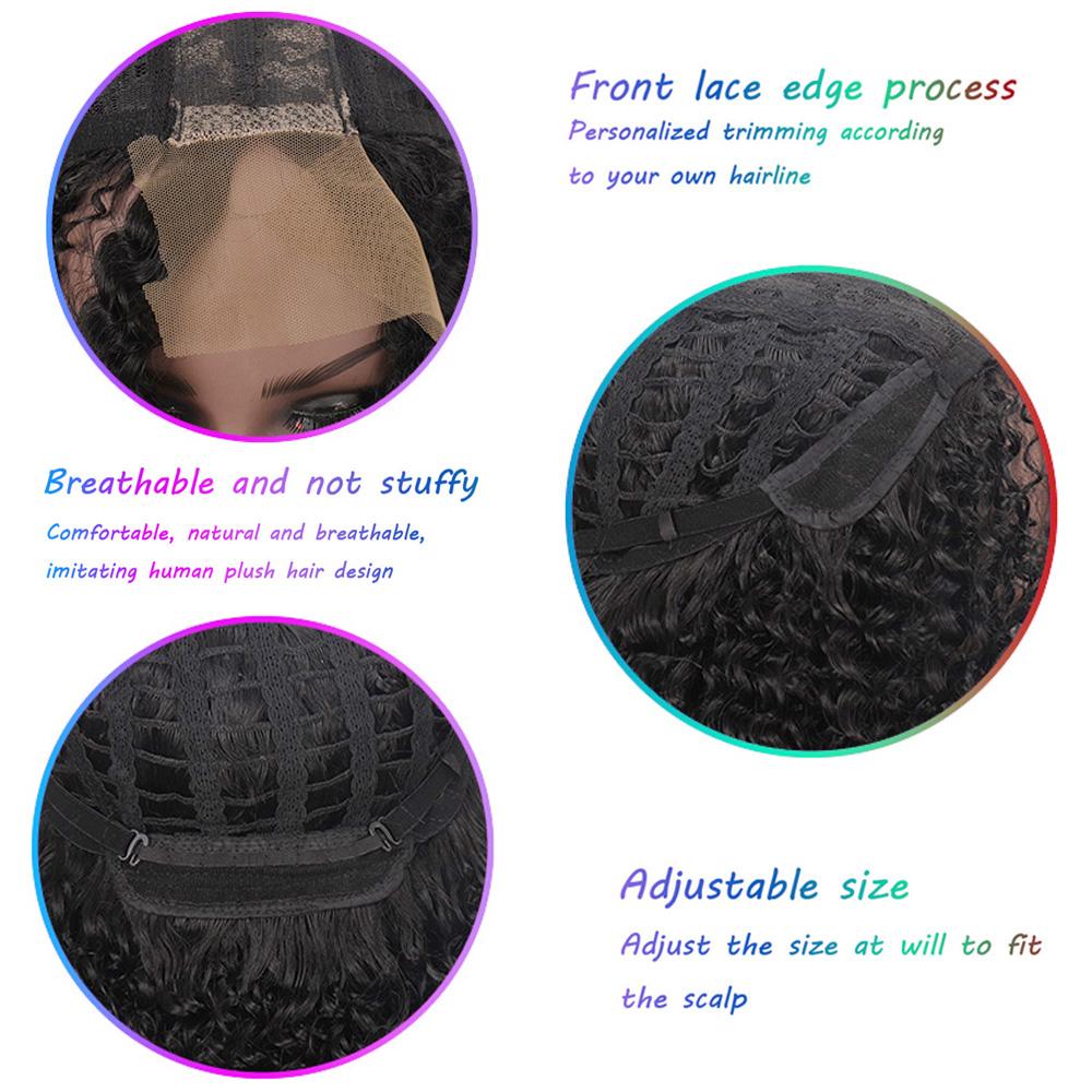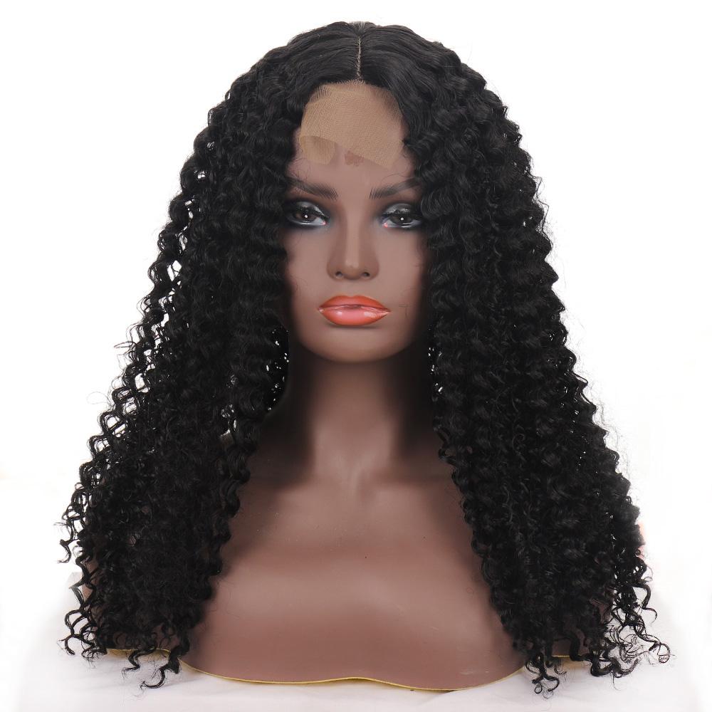 Bybrana Черный вьющийся парик средней длины из мягкого термостойкого волокна со средней частью из синтетического волокна на каждый день