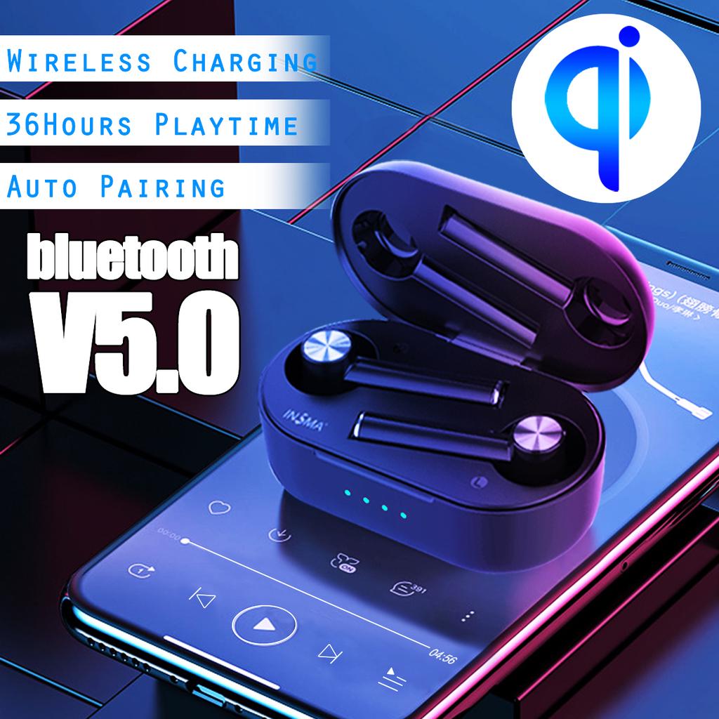 INSMA Airbuds 2 TWS Bluetooth V5.0 Наушники с настоящей беспроводной зарядкой и двойным микрофоном с шумоподавлением Hi-Fi бас-гарнитура с управлением по щелчку — купить товар онлайн с бесплатной доставкой до всему миру!