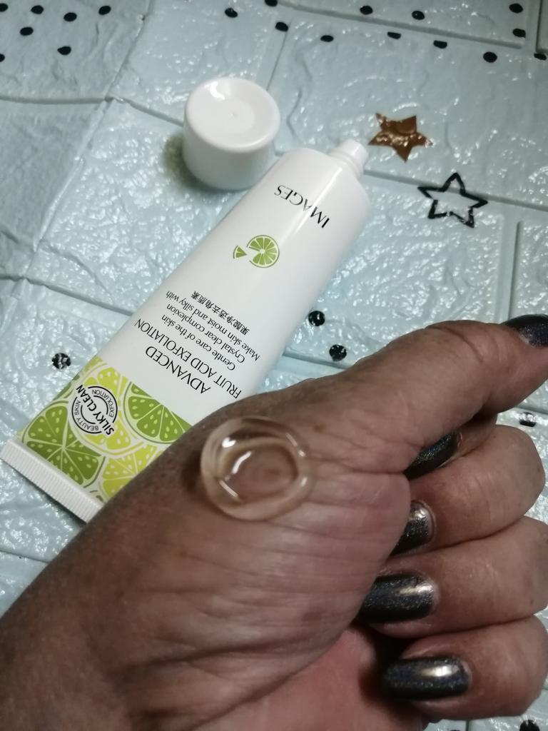 ГЕЛЬ - СКРАБ ДЛЯ ЛИЦА. Это мой повторный заказ, потому что мне очень понравился результат после использования 🥰. Но обо всем по порядку: 🍋 Тюбик 80 гр. пришёл без коробки. Состояние идеальное. Имеется металлическая защитная мембрана. 🍑 Гель густой, прозрачный. Запах приятный фруктовый. 🥝 Способ применения: - предварительно очистить кожу; - нанести гель тонким слоем, массировать лицо в течение 1-2 минуты, затем смыть тёплой водой; - в заключении увлажнить кожу привычным средством. От себя: гель наносить на сухую кожу тонким слоем. Гель скатывается в белые хлопья, не причиняя коже дискомфорта. 🍎 После применения кожа удивительно гладкая и нежная. Хорошо очищает чёрные точки и удаляет отжившую своё кожу. 🥭 Цена для такого объёма средства достаточно низкая. Я в этом геле увидела только плюсы. Довольна на 💯 %. Желаю всем только приятных покупок 🛍.
