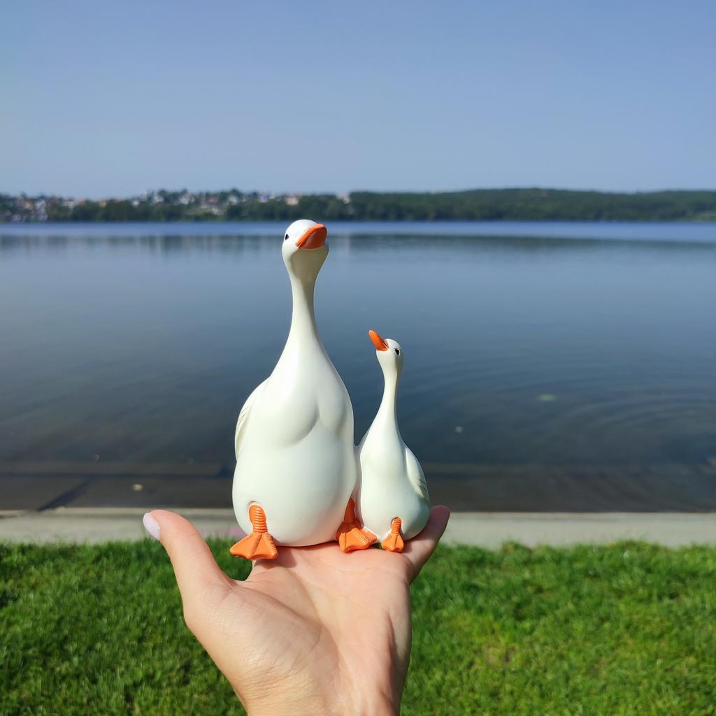 Садовая фигурка "ГУСИ" 🦢 Очень симпатичная парочка, которая способна украсить не только приусадебный участок, но и полочку в квартире!👌🏼 Гусята приехали ко мне тщательнейшим образом упакованные: в картонной коробке, в пенопластовой защите и в пупырке! Продавец на этот счёт сильно заморочился, зато в пути мой заказ не пострадал. Фигурка керамическая, матовая, лёгкая. Высота гусей в размере L - 15 см (как и обещал продавец в описании). Без минусов тоже не обошлось - краска на клювиках и лапках гусей кое-где нанесена не очень аккуратно, но это можно заметить только при ближайшем рассмотрении. В целом, гусики мне понравились, могу рекомендовать!❤️