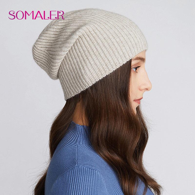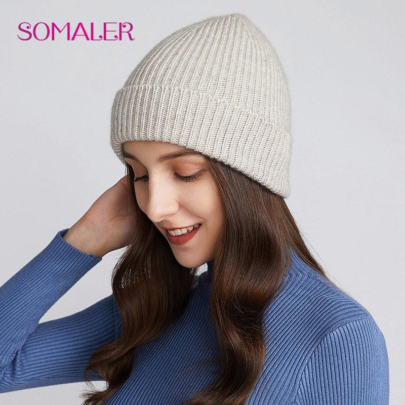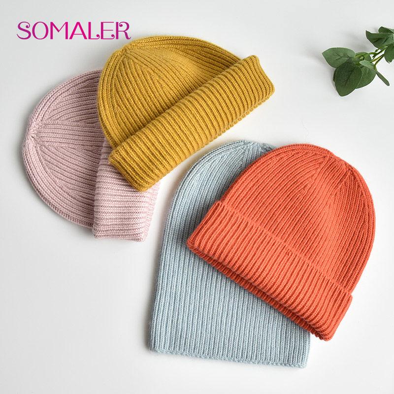 SOMALER Зимняя вязаная шерстяная шапка с напуском, бесшовные стильные легкие шапки с черепом, осенне-осенние женские вязаные шапки, 3 стиля носки
