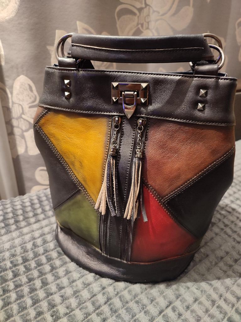 Месяц в пути и сумка у меня! Впечатления первого дня: очень твёрдая, просто дубовая для меня, но буду привыкать! Кто любит не пластичные сумки, берите она для вас создана! Можно вытянуть ремни до конца и носить на одном ремне, можно затянуть до отказа и носить за одну небольшую ручку, а можно использовать, как рюкзак! Красивая, очень не обычная, цвета правда не такие яркие, как на фото продавца, но это даже лучше! Строчки все ровненькие, фурнитура качественная! На тыльной стороне хороший, глубокий карман глубиной 15-17 см с молнией, спереди, где две кисточки - два отделения в стороны, не обманка, внутри тоже есть два довольно вместительных карманчика на молнии для документов и один глубокий без молнии! Пока не могу понять: удобная она для меня или нет! Привыкла к сумкам на длинном ремне через плечо! Присмотритесь, кто любит твердые сумки! Рекомендую продавца! Упаковка и доставка на высоте! Спасибо Joom!