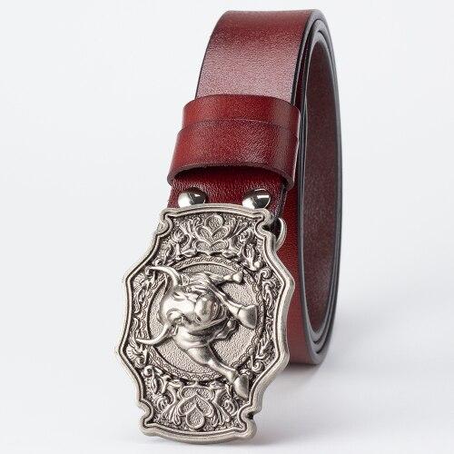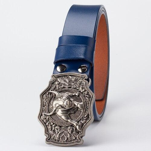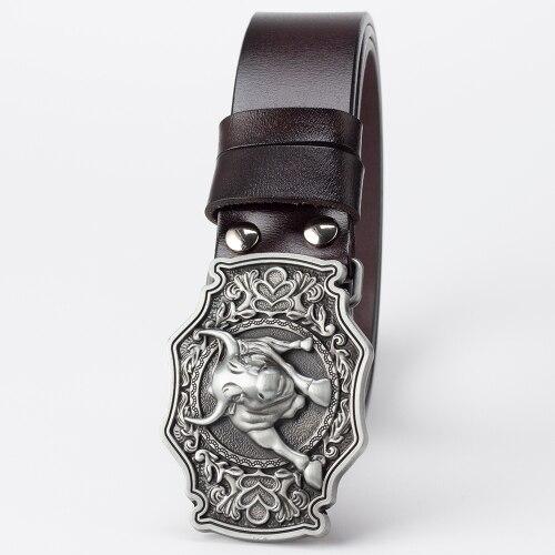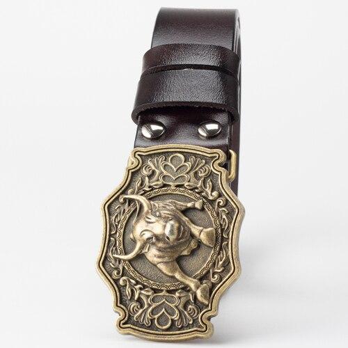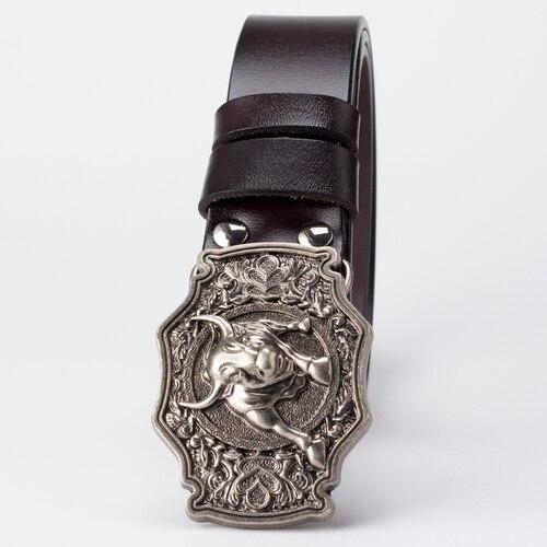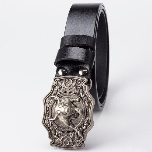 Мужской ремень из коровьего быка с гладкой пряжкой из цинкового сплава, мужские ремни из натуральной кожи в стиле панк-рок, повседневные мужские аксессуары
