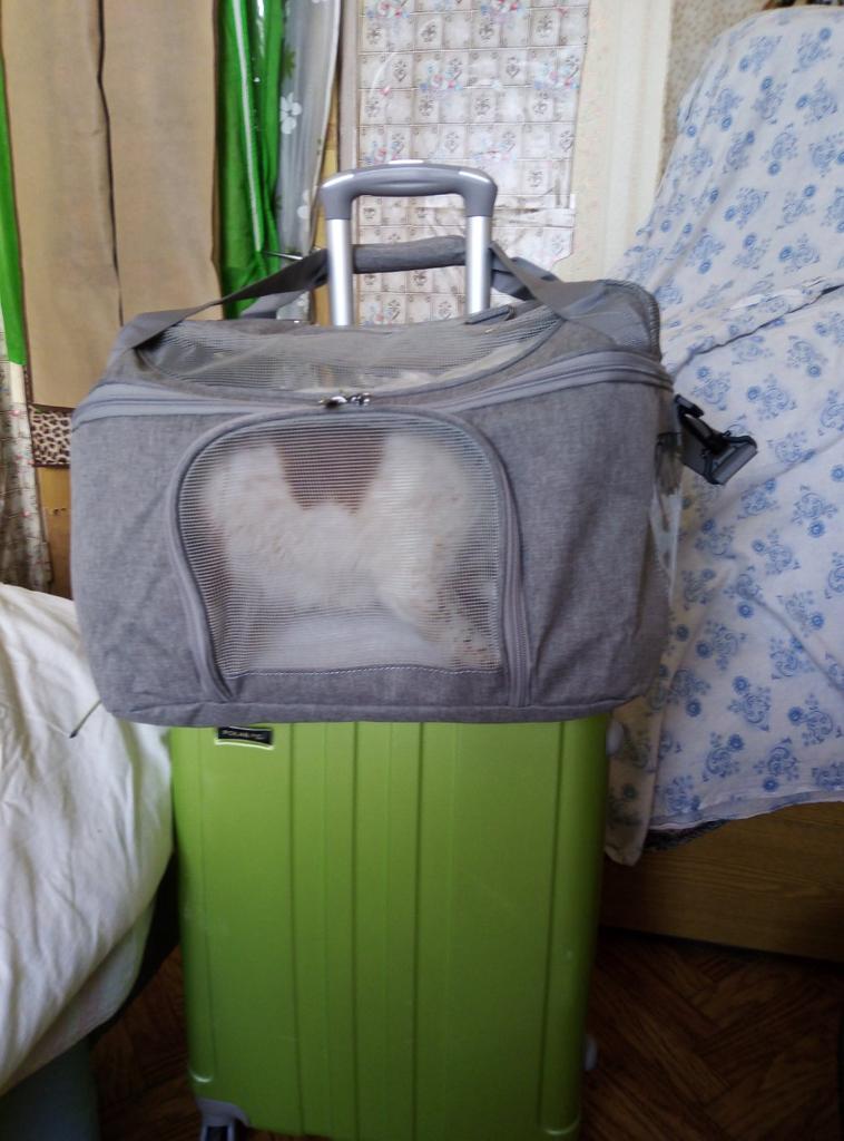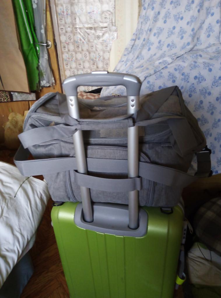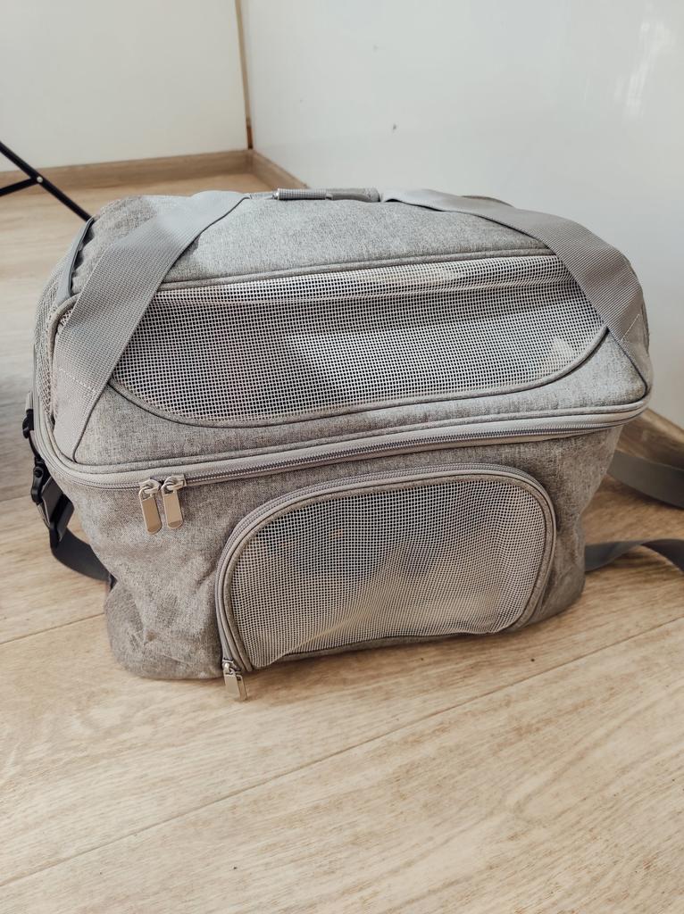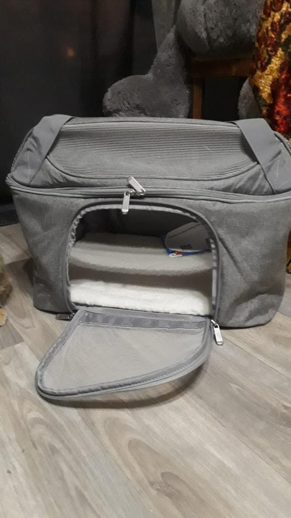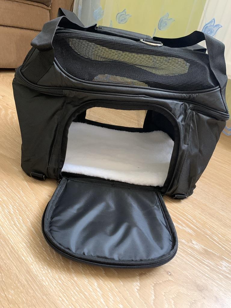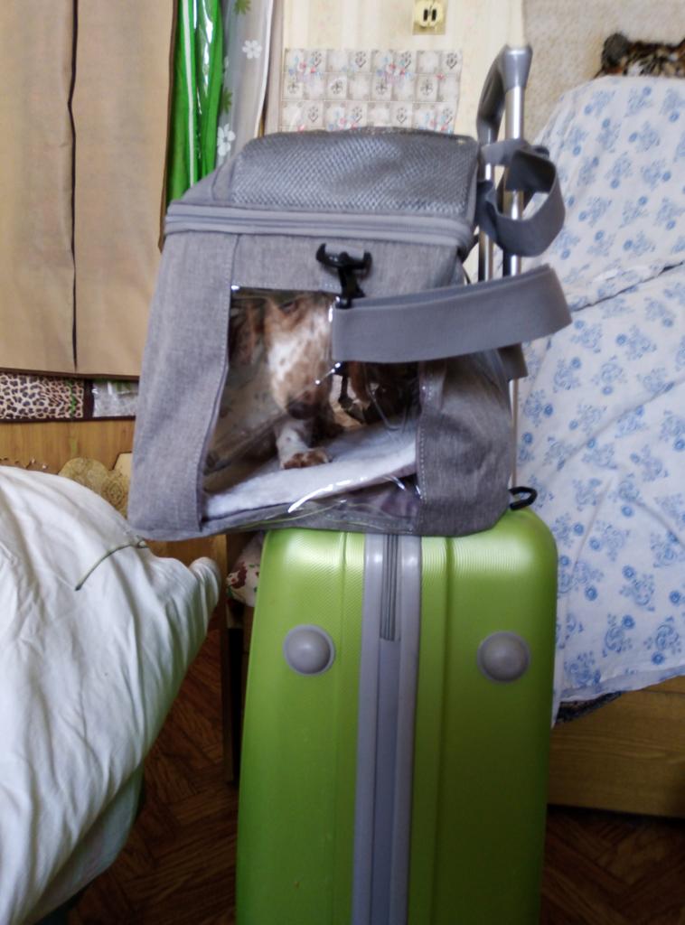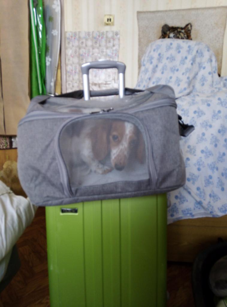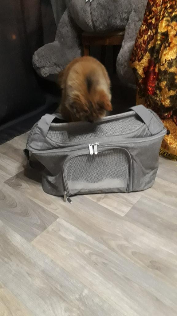 Хорошая сумка для животных, брала таксе кроличьей, поместилась хорошо, есть свободное место, немного шире моего чемодана, но если зафиксировать и боковой ремень и верхнии ручки за выдвижную ручку чемодана, то все нормально. По габаритам сумки и весу такса входит в ручную кладь, под сиденьем самолёта поместится вполне. Слетаем куда-нибудь, тогда отпишусь. Спасибо! Рекомендую! Опробовали, такса ездила в переноске из Москвы в Спасск-Рязанский на автобусе, электричке, экспрессе, такси. Все прошло успешно, сумка отлично держится на чемодане если ехать спокойно, если бежать сломя голову, то перекручивается и висит под выдвижной ручкой. Вес 4800 кг в режиме сломя голову и снося все на своём пути выдержала на 5 баллов. У папы пришлось её отнять и просто нести на плече на длинном ремне, пластиковые карабины выдержали. Таксе удобно, что есть окошки и она видит куда едем и всех вокруг, сетки крепкие, воздухообмен хороший, тихо лежала весь путь, в такси смотрела вперёд куда едем через окно. В экспрессе просто стояла на полу и никто не понял, что там такса, никому не мешала, чтобы понять, что там животное надо очень внимательно смотреть.