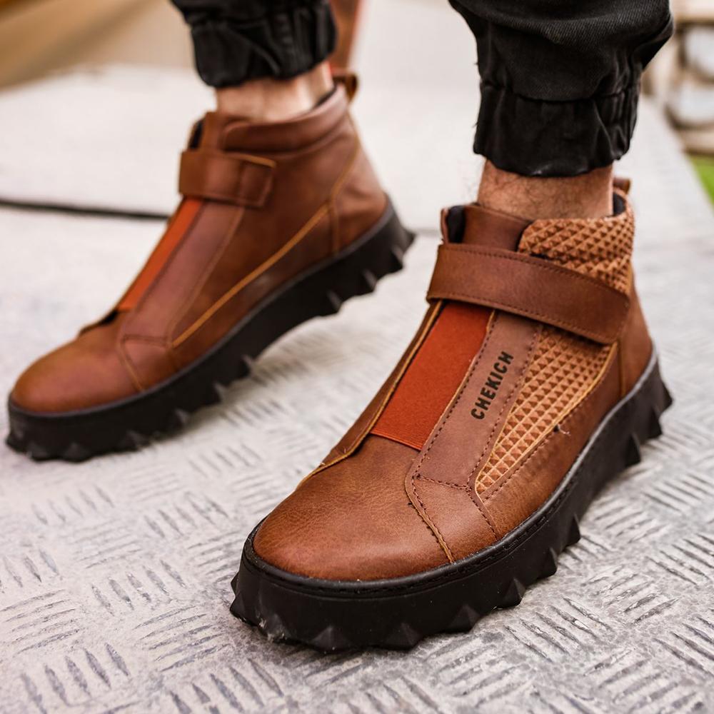 Chekich Мужская обувь, ботинки коричневого цвета, не кожаные застежки-липучки, удобная обувь для щиколотки зимнего сезона, эластичная лента, черная подошва, CH103