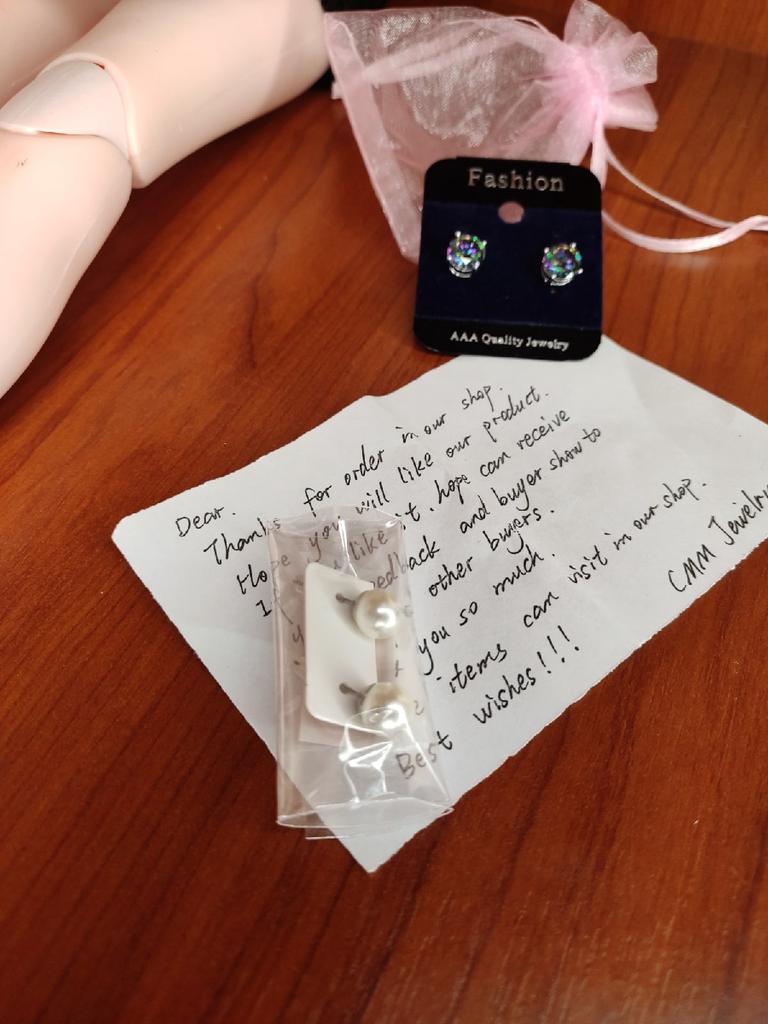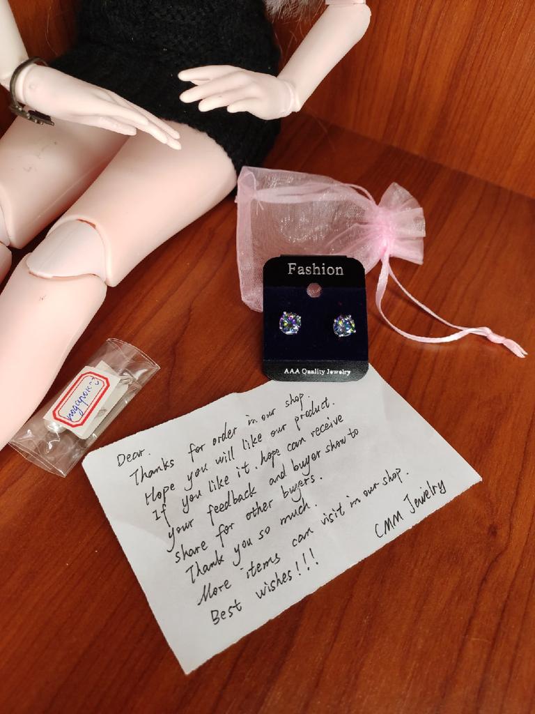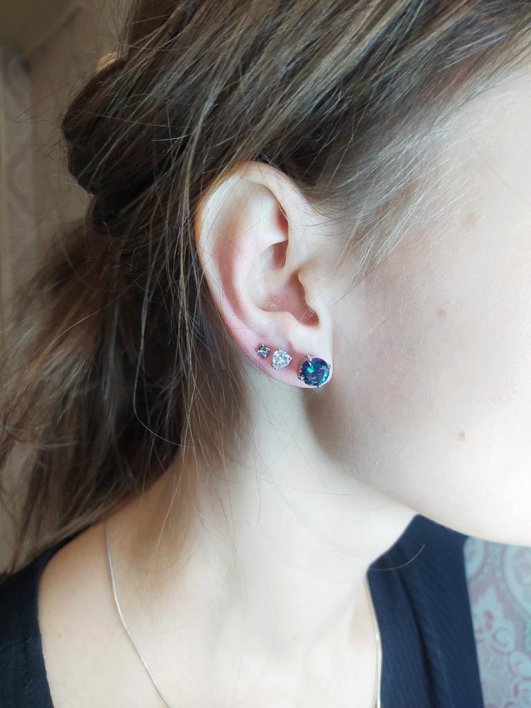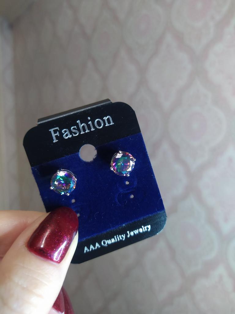Получила шикарные серьги гвоздики, камни в них кубический цирконий, очень красиво смотрятся в ушка, переливаются всеми цветами радуги, уши от них не болят при носке хоть они и не из серебра, ношу уже неделю ежедневно, как новые! Пришли в мешочке с запиской от продавца и подарочком еще 1 пара сережек гвоздиков под жемчуг, очень было приятно. Я вообще обожаю подобного рода камни, они отлично подходят под любой цвет одежды и мероприятие. Хочу еще кольцо с таким камнем заказать. 😍