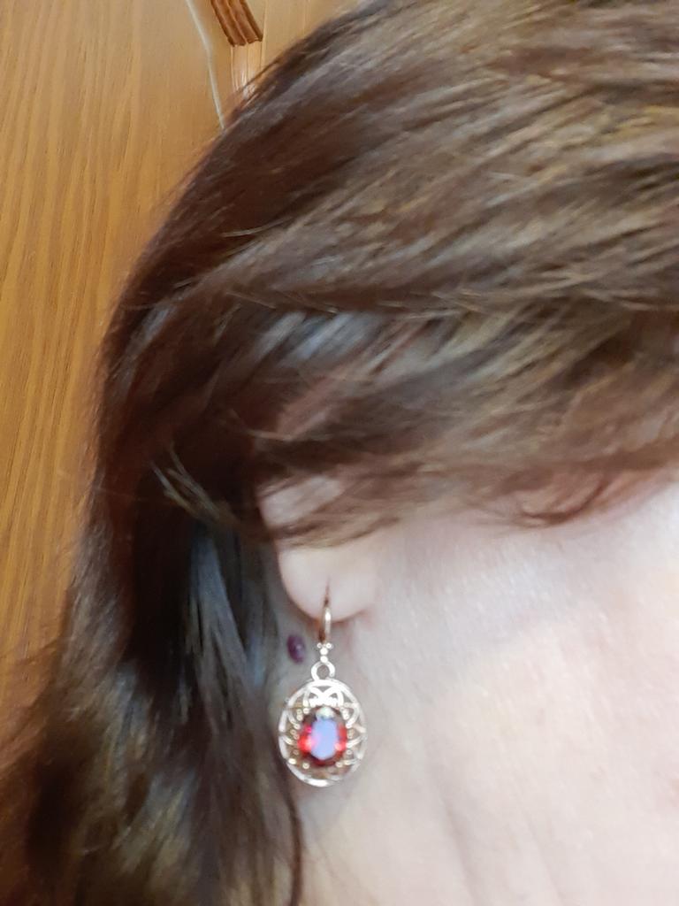 Замечательные висячие серьги, заказываю не первый раз, у меня уже есть такие же другого цвета. Очень мне нравится форма, прямо-таки кружево вокруг камня, сам камень темно-красный прозрачный. Металл под желтое золото, не отличить. На ушках чувствуются. К покупке рекомендую, не пожалеете, настроение поднимают. Спасибо продавцу и производителю, получила достаточно быстро, в течение месяца, но почему-то очень долго обрабатывался мой заказ у продавца, прежде чем его отправили.