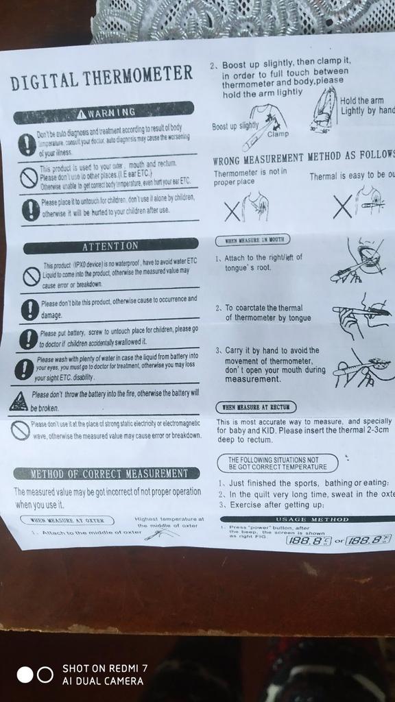 Пришёл градусник,в сборной посылке ,за три недели ,целый работает ,перевела инструкцию вполне все понятно,попробовала показывает цифры температуру ,конечно пока не правильно то есть ниже нормы ,35,4 а не как обычно 36,6 но для таких это вполне обычно ,все электронные показывают ниже нормы из надо настраивать, спасибо Джум и производителю