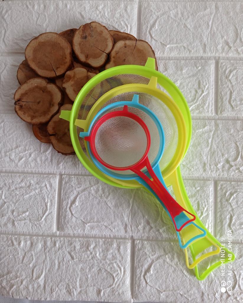 Набор сито получила,все в порядке,яркие,добротные,удобно ,что разного размера,все пригодится в хозяйстве,спасибо,все дошло в целости,упаковано было отлично,спасибо Джуму за проделанную работу,продавцу респект за качество товара !дополняю,решила применить новые сито в работе,большое сито ,самое ходовое оказалось с браком,дорожка посередине сетки по длине,ушки короткие и сито слетает с кастрюльки,не держится,нужно было процедить жидкость,к продавцу претензию не предьявляю,это производитель на контроле пропустил такой брак,звёзды снимаю за брак,само Донце деформировано,округлой формы нет,что тоже очень неудобно,в общем бракованный товар ! Фото прилагаю к претензии