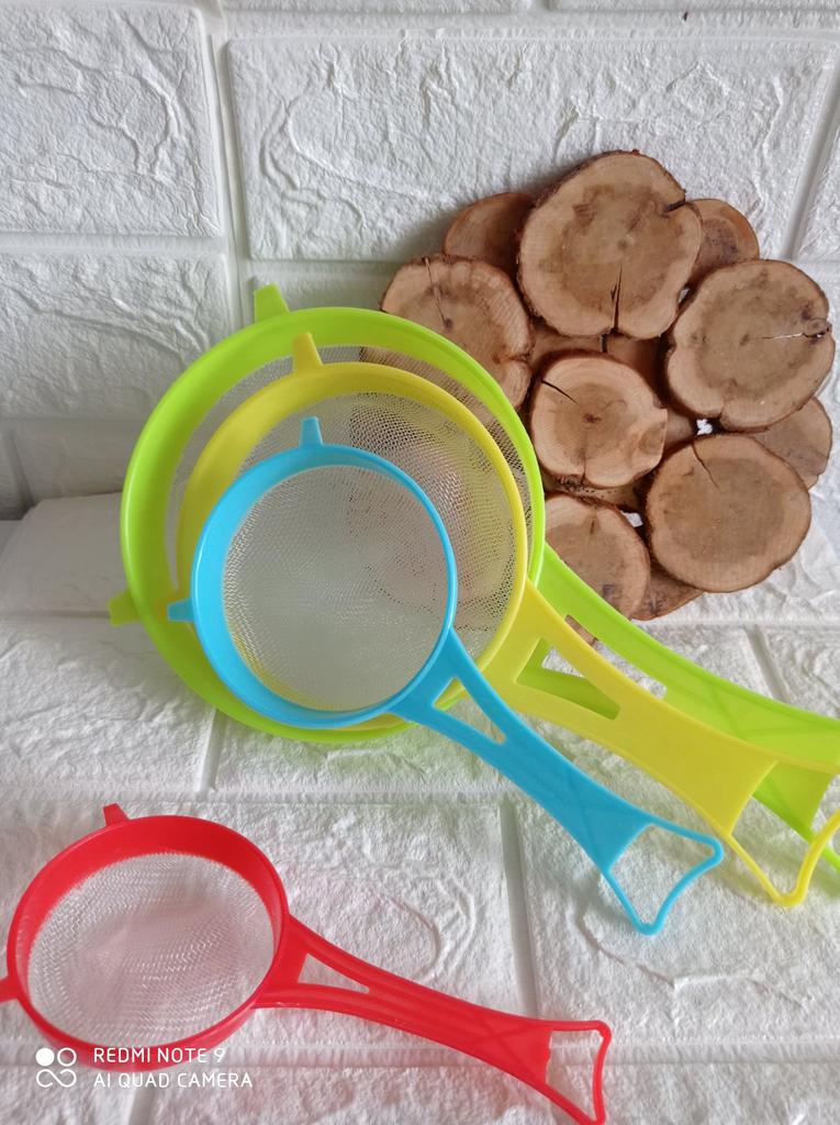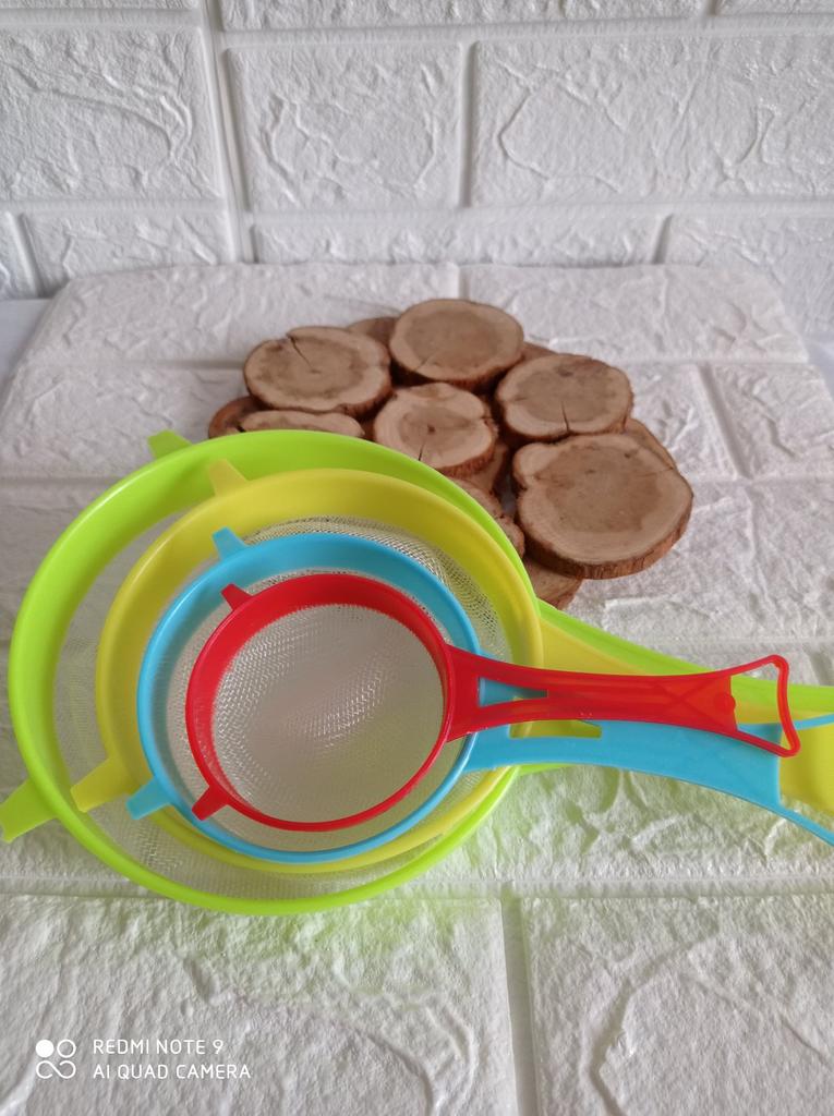 Сито пластиковые с ручкой, 4 шт. Набор сит пластиковых с ручкой незаменимый помощник на любой кухне. С помощью ситечек можно просеивать муку, специи, корицу, сахарную пудру, манку, крупы, какао, чая, пенки, песка, снимать пену, процеживать. В комплект входят 4 кухонных сито с ручкой разного размера. Крепкая сетка решетка и прочный корпус обеспечат кухонным аксессуарам долговечность, можно использовать как дуршлаг. Держатели ободка упростят применение сито надежно закрепится на весу. В наборе представлены сита диаметром: 13,5 см, 11,5 см, 8,5 см, 6,5 см глубина сетки 3,5см. Доставлены в почтовое отделение за 1,5 месяца живым треком в сборной посылке 👍 Товар и продавца рекомендую 👍