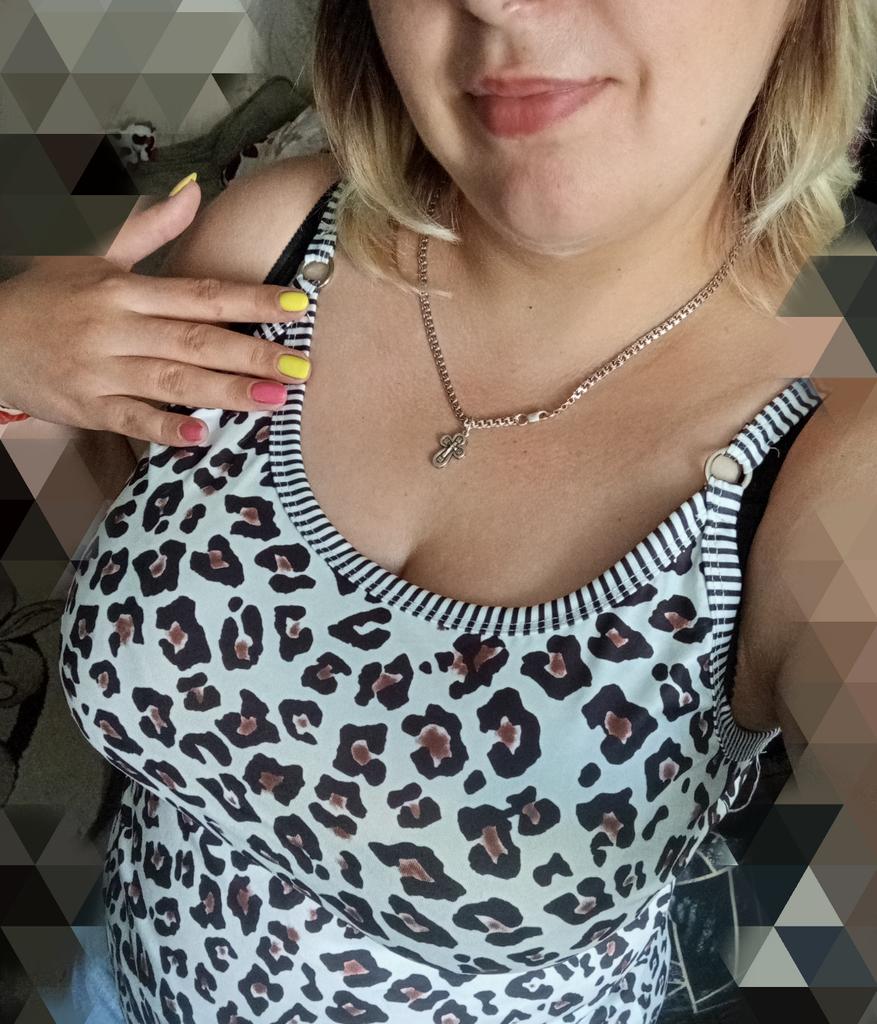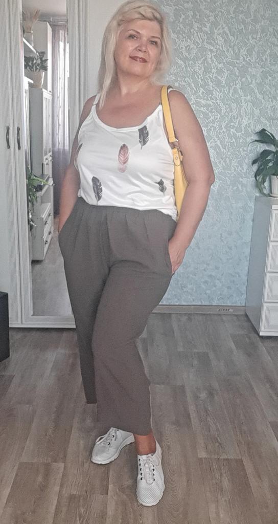 Всем летний, жаркий привет. 👋 Наконец-то добралась до обзора этого лёгкого топика. Итак... Летний топик с перышками. 🪶 Заказала размер 4XL. На мои параметры можно было бы и на размер меньше брать. Ткань: 35% хлопка, 65% полиэстер По ощущениям ткань приятная к телу, хорошо тянется, немного холодящая, мнется, слегка просвечивает. Бюстгальтер под него нужен или телесного цвета, или белый. Бретельки тонкие на колечках, которые не регулируются. Швы ровно просроченные, нитки не торчат. Мои параметры: ✅ Рост - 162 ✅ ОГ - 103 ✅ ОТ - 94 ✅ ОБ - 116 Замеры топа: 🪶 длина бретельки - 20,5 см 🪶 ОГ- 106 - 120 см (в растянутом виде) 🪶 ОТ- 102 -112 см 🪶 длина топа - 68 см К покупке рекомендую! Спасибо продавцу, спасибо Джум! Подписывайтесь на мой телеграмканал. Всем пока! 👋