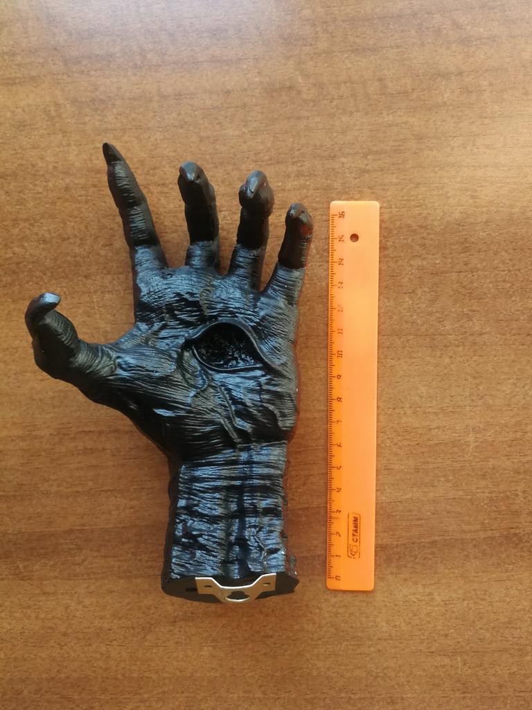 Заказ шел месяц. Упакован в пенопласт и картонную коробку. Упаковка замята, заказ не пострадал. На костяшках двух пальцев стерта краска. Крепление непригодно к использованию. Сама рука меньше чем заявлено и не такая как на фото. Скорее похожа не детскую ручонку, чем не демоническую) Вместо глаза какая то каша. Итог зря потраченные деньги. Если бы видел в "живую" и 100 рублей бы не дал, не говоря уже о 700!