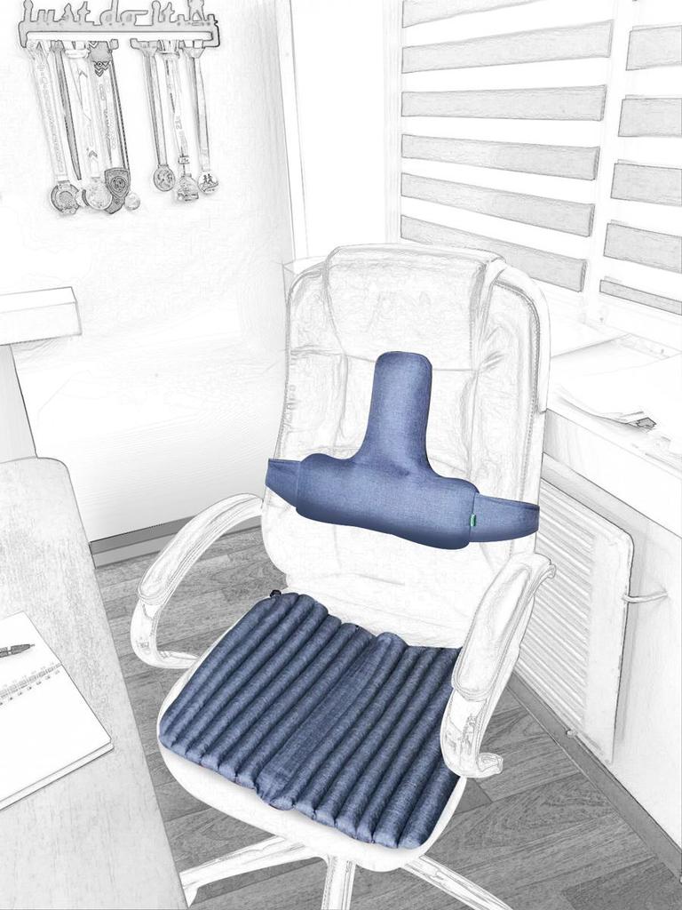 Подушка под поясницу Т-образная, отлично поддерживает поясницу, не давая позвонкам сжиматься и испытывать напряжение.