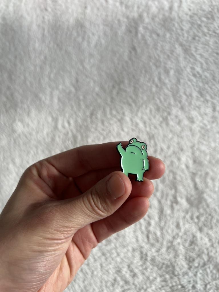 Потрясная лягушечка, я в полнейшем восторге от неё 🤩, вы только посмотрите на эту дерзкую милоту😁. 🐸Брошь хорошая, качественная, добротная, размер соответствует. 🐸Особенно стоит отметить застежку, все мои значки имеют металлические зажимы, они неудобны, быстро разбалтываются и слетают. В данном случае застежка плотная резиновая, сидит туго, не сквозная и не будет колоться или причинять неудобств👌. 🐸Я заказала 2 значка, упаковка надёжная 👍, дефектов или повреждений нет, всё отлично. Однозначно рекомендую к покупке, ляга бомба 💣. Обнимаю 🤗 #Ксю !
