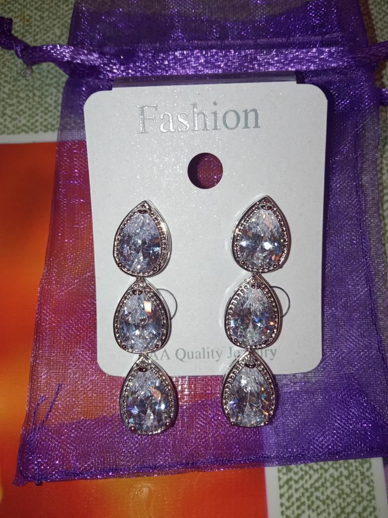 Очень красивые серёжки капельки, переливаются на свету очень красиво, одновременно заказывала две пары серёжек, пришли вместе, упакованные в коробочку вместе с двумя фиолетовыми мешочками и запиской с благодарностью, такое мне приходило только из двух магазинов🤗, пришли без повреждений, продавцу спасибо большое🥰, к покупке рекомендую