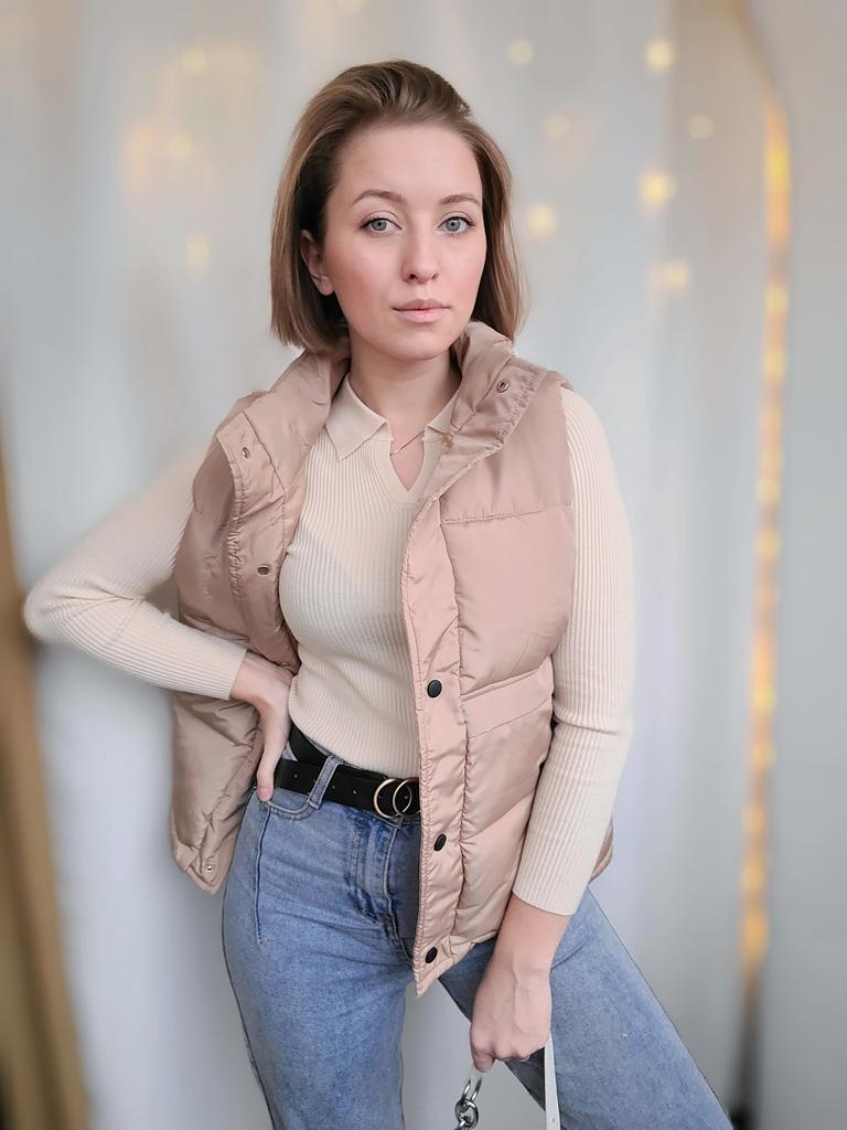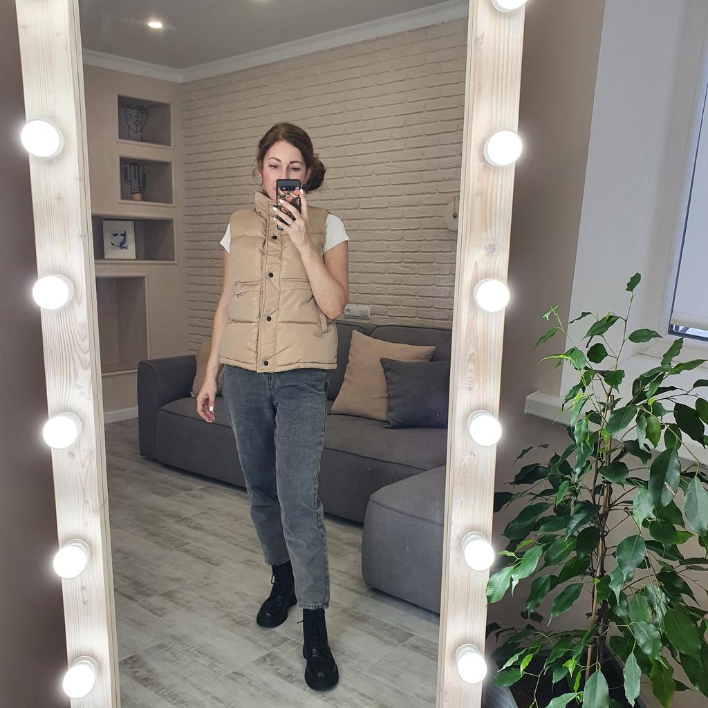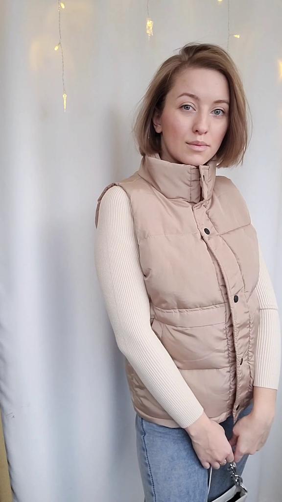 Стильная жилетка. Всем привет! Когда получаешь качественную вещь, ей сразу хочется поделиться)) По ссылке три расцветки и есть размерный ряд. У меня уже был обзор на такую молочную, теперь решила взять бежевую. И бежевая мне понравилась гораздо больше! По фасону жилетка не приталенная, с воротником стойкой. По бокам-карманы. Застегивается на кнопки. Верх- болоньевая, водоотталкивающая ткань. Изделие гармоничное и приятное. Запаха, ниток, ничего этого нет. На свои 90-70-98, рост 169, выбрала ХЛ- просто отлично. Советую, суперская!!! ❤