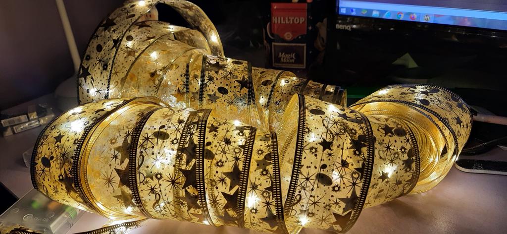Всем привет! 👋😁 С Наступающим Новым годом и Рождеством Христовым! 🎄🎅🎁 Сегодня мой обзорчик на праздничную тематику. Получила светодиодную ленту для декора ещё в конце октября, но пишу сейчас, когда украсили ёлку, чтобы видеть воочию. Заказала себе 5-ти метровую, в серебристом цвете. У продавца на выбор есть 2 м/ 5м и цвета серебро/золото. Лента 2-х слойная, из органзы, внутри точечные светодиодики. Работает от двух батареек типа АА (в комплект не входят). Ширина ленты - 5 см. Отличный элемент декора! Может послужить как гирляндой, так и украшением в виде банта или спиральки, в общем, фантазии нет предела. Я покупкой осталась оч довольна, возможно закажу ещё золотистую. ☝️🙄 ✈️ Доставка в Беларусь долговатая, 1,5 месяца от момента оформления заказа и до получения на почте, поэтому рекомендую позаботиться заранее. 🧐 Трек номер отслеживался частично. Спасибо продавцу и Джумику! 🤗❤️ Всем приятных покупочек и быстрых доставочек! 🛍️ Здоровья, мира и благополучия! 😘💕