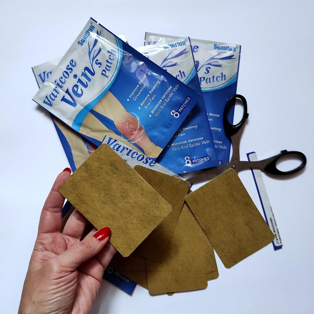 В посылке три упаковки по 8 пластырей. У меня достаточно большая область поражения, поэтому пришлось сразу пять пластырей наклеить. Не знаю как у кого, а у меня появилось сильное жжение, которое терпеть можно, но временами не так просто. На том месте, где был приклеен пластырь на сосудистую сетку, заметны улучшения. Она стала менее яркой. Посмотрим как будет с самой веной. В любом случае продавцу спасибо за товар!