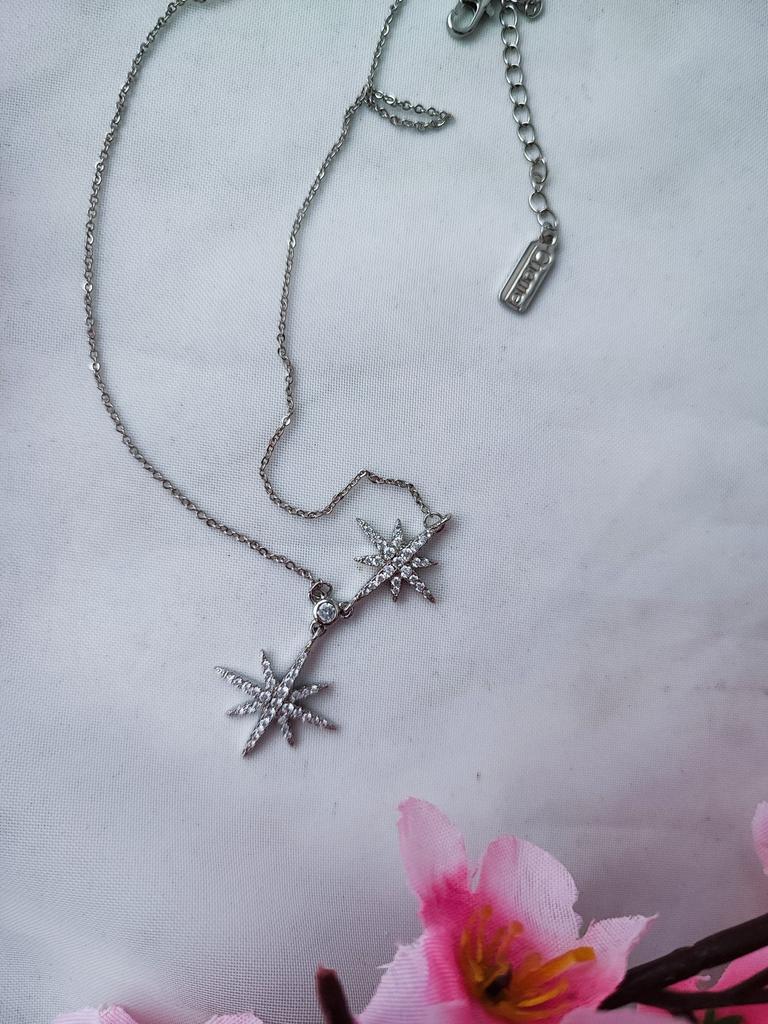 Элегантное колье ✨ Когда я впервые его увидела не смогла устоять ) я люблю такие лёгкие, нежные и в тоже время притягивающие взгляды украшения 😍 Хотя, я вообще люблю все украшения )) Длина цепочки примерно 40-45 см, кулон в виде двух звёзд со стразами смотрится отлично 👍 Особенно ярко это украшение смотрится и блестит вечером ✨ Но а я его ношу постоянно ) не снимаю даже во время сна и принятия душа ) Пока не потемнел и выглядит так же как и после покупки 😍 Прекрасное украшение и цена доступная ) я довольна 🤗🥰 Поэтому, если вдруг захотите приобрести себе или в подарок кому то, советую обратить внимание ) Надеюсь была вам полезна ) Приятных покупок 🥳