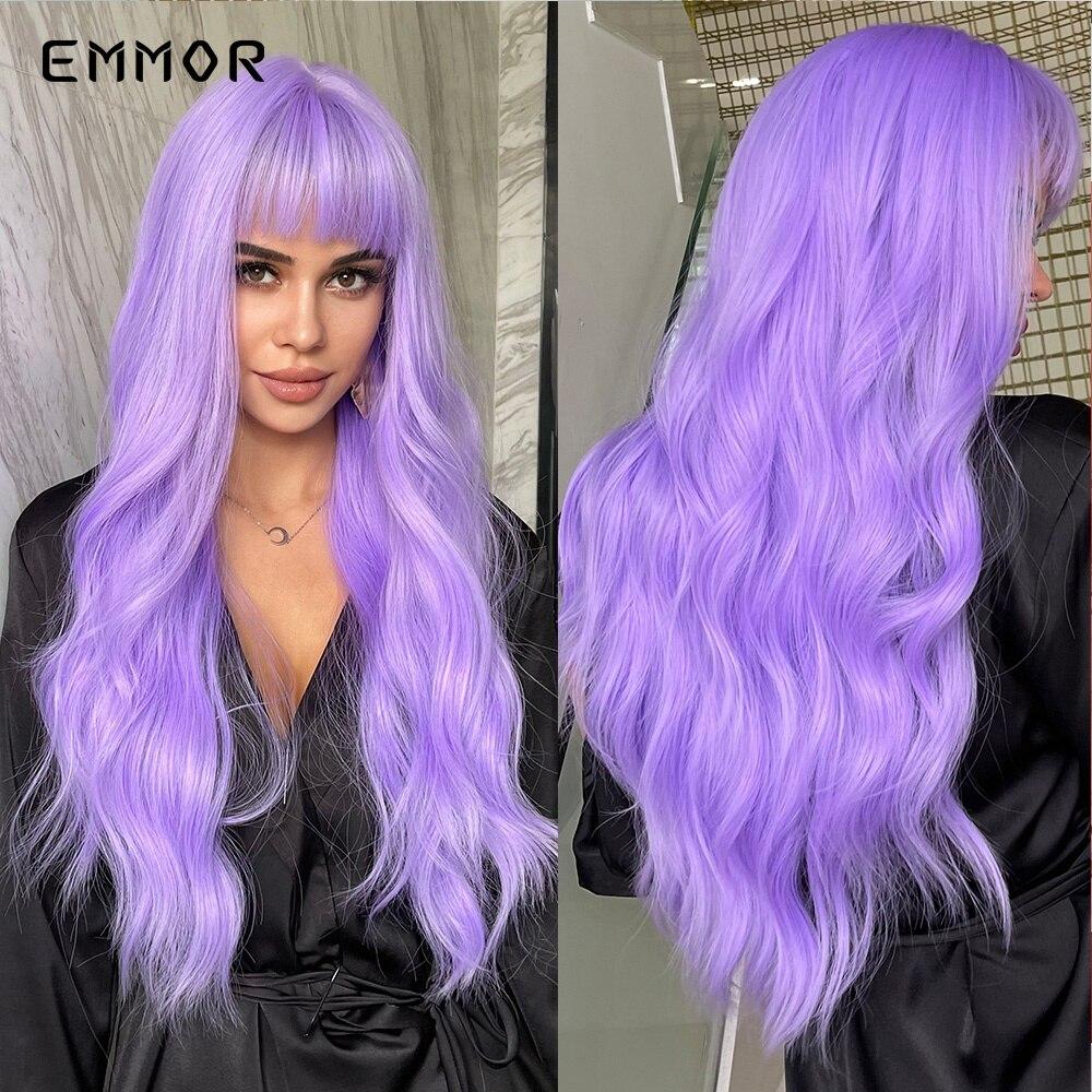 Фиолетовый синтетический парик для женщин, парики Лолиты для косплея с челкой, длинные объемные волны — купить товар онлайн с бесплатной доставкой по всему миру!